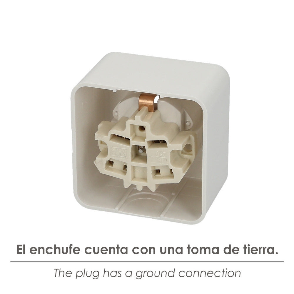 - El enchufe cuenta con una toma de tierra que garantiza una mayor seguridad al proteger los dispositivos y las personas contra posibles descargas eléctricas.