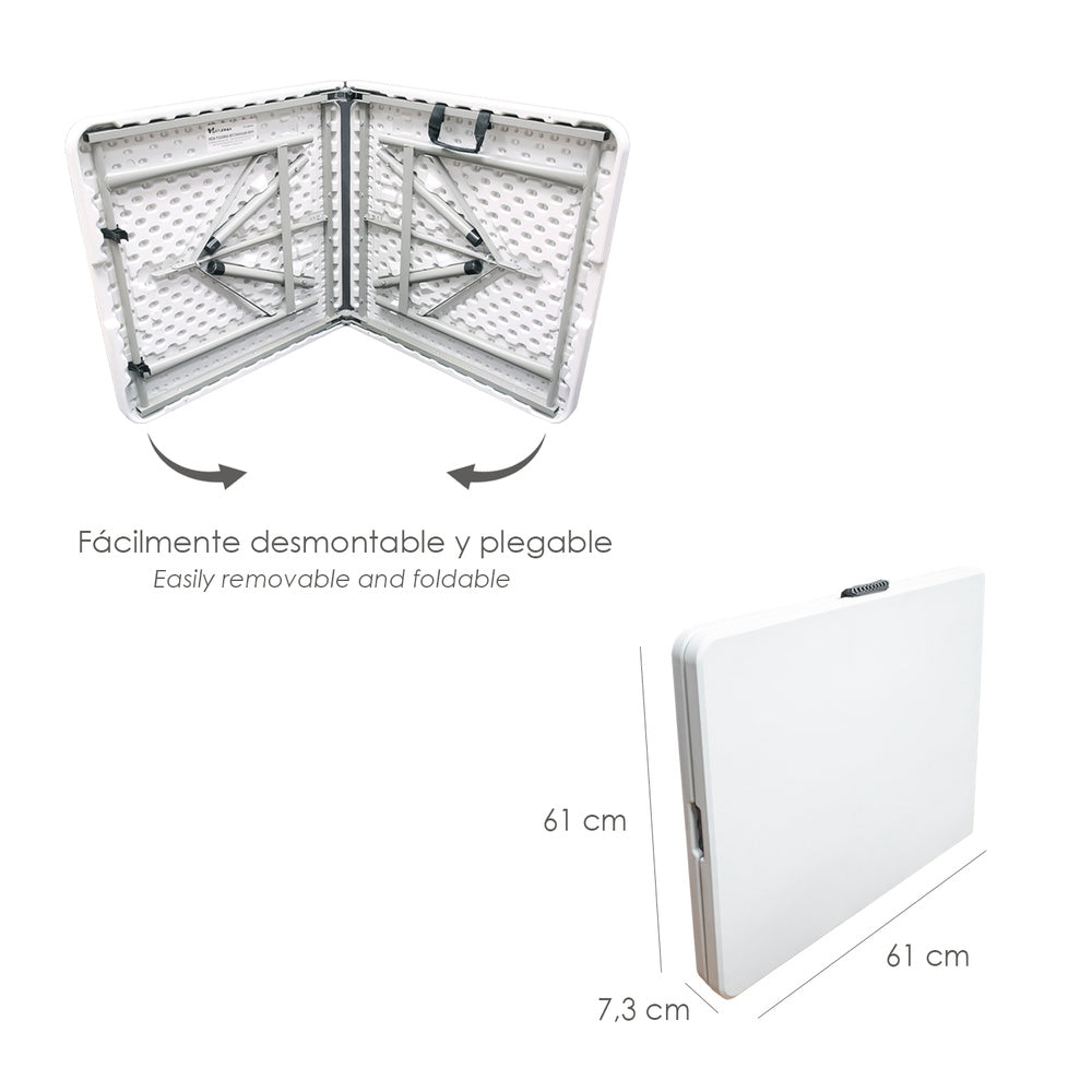- Cuenta con cierre de seguridad para ajustar su total apertura y evitar que la mesa se cierre. Las patas también cuentan con sistema de seguridad, para que estas no se cierren de forma involuntaria.