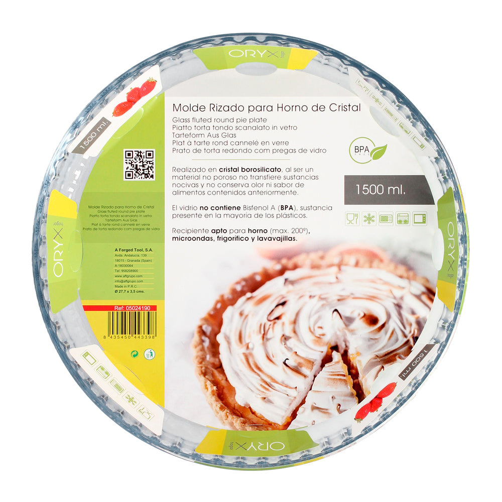 Molde rizado horno cristal borosilicato ø 28 cm. ideal postres, cocina, resposteria, tartas, quiche, libre BPA