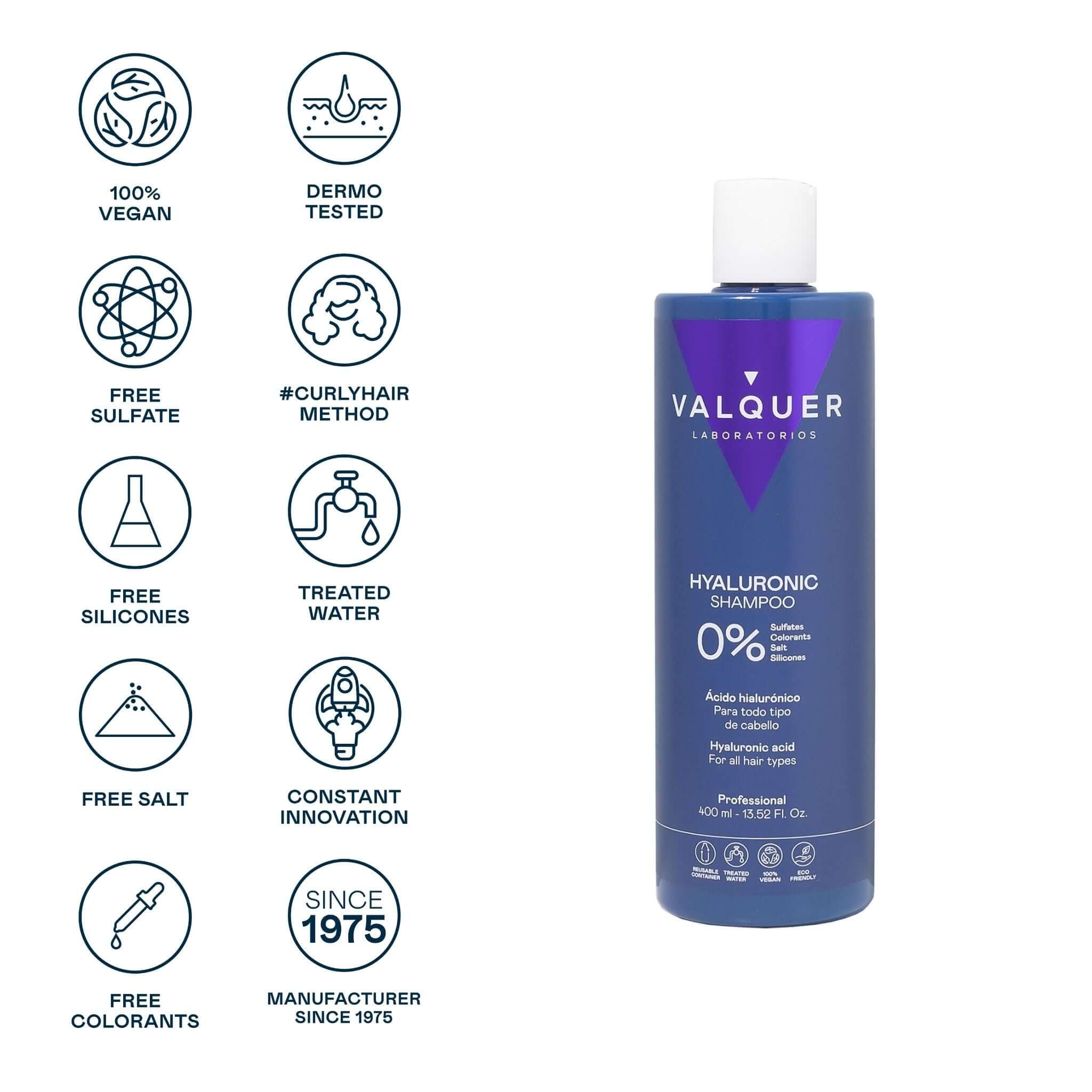 Champú hidratante sin sulfatos, enriquecido con ácido hialurónico, pantenol y keratina vegetal. Apto para todo tipo de cabello, especialmente los que necesitan hidratación extra, brillo y vitalidad.