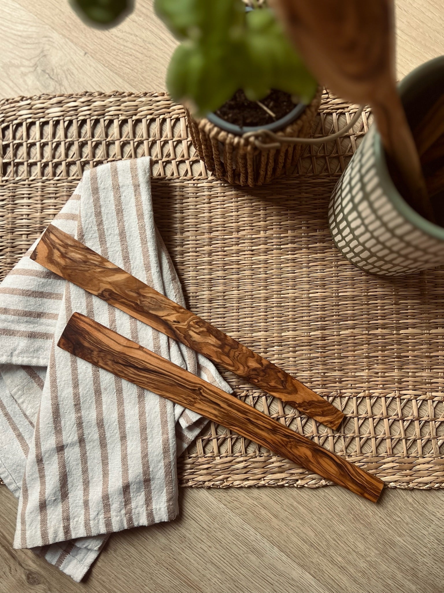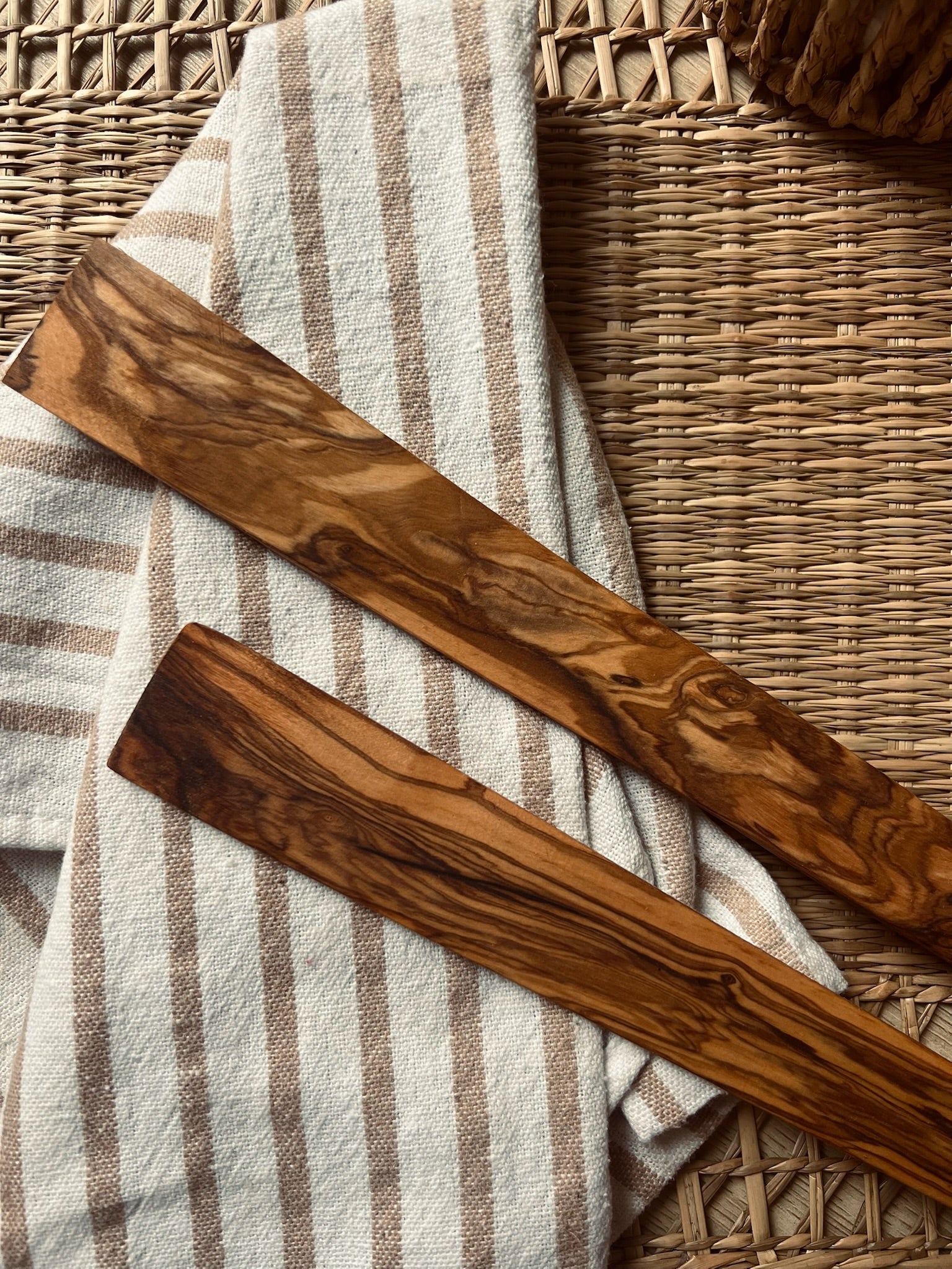 - Material and finish: 100% natural olive wood, without varnish or chemicals; finished with kitchen-safe vegetable oil.