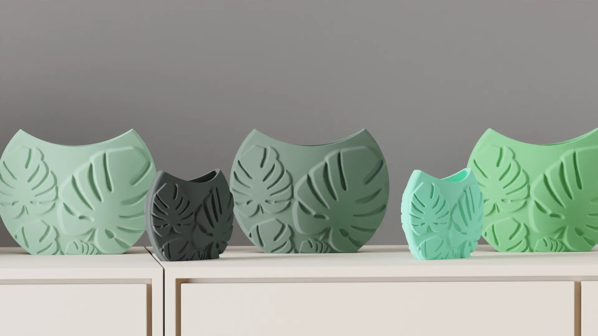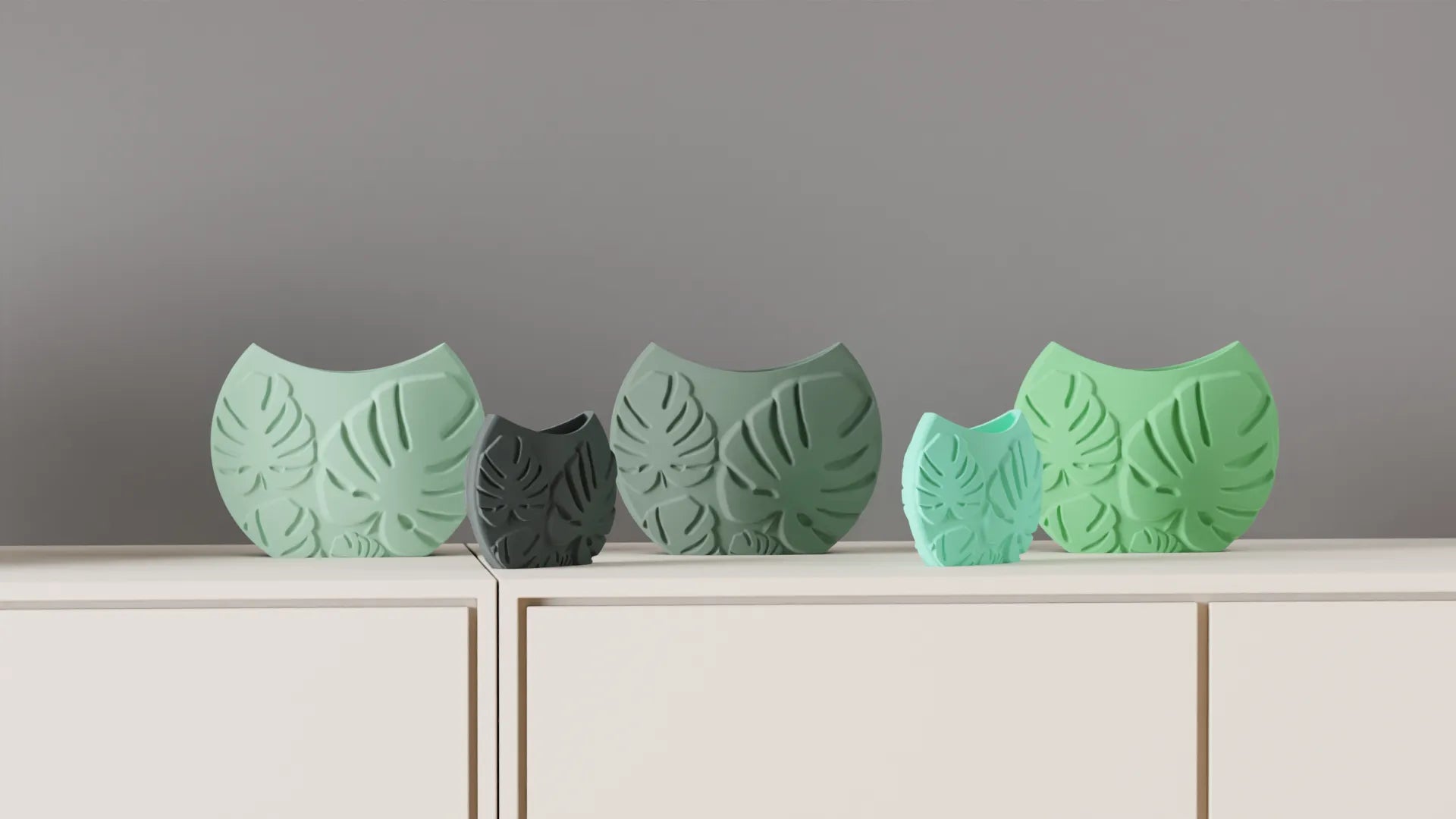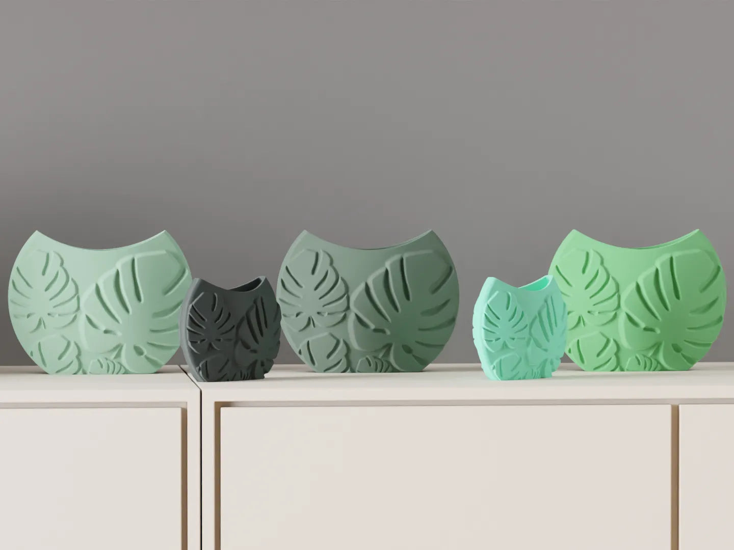 This 3D-printed decorative vase, inspired by tropical nature with a relief of monstera leaves, is ideal for those looking to add a fresh, modern touch to their home decor. Its organic, gently curved design fits perfectly into any space, whether as a stand-alone piece or as an accompaniment to dried floral arrangements.