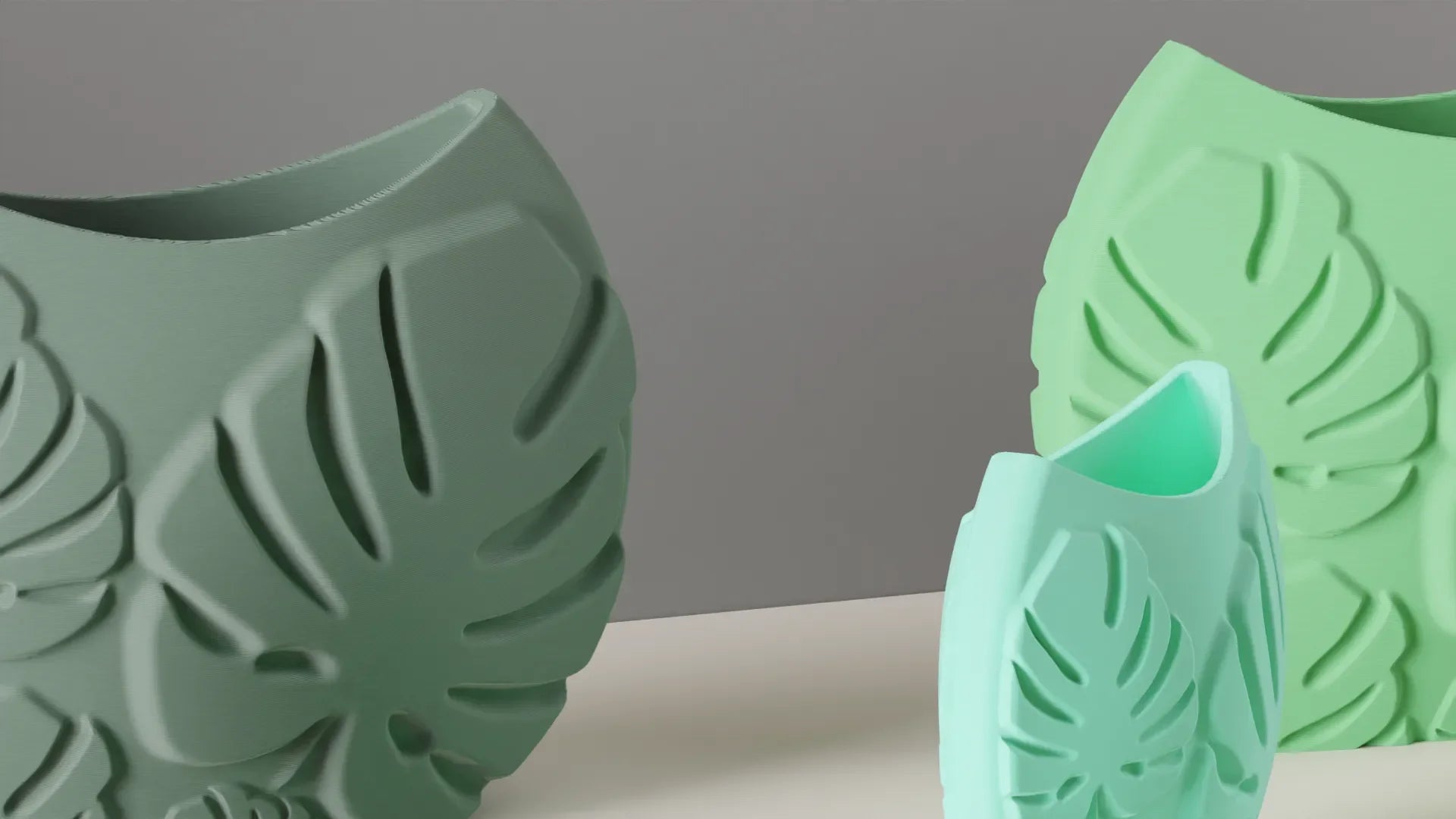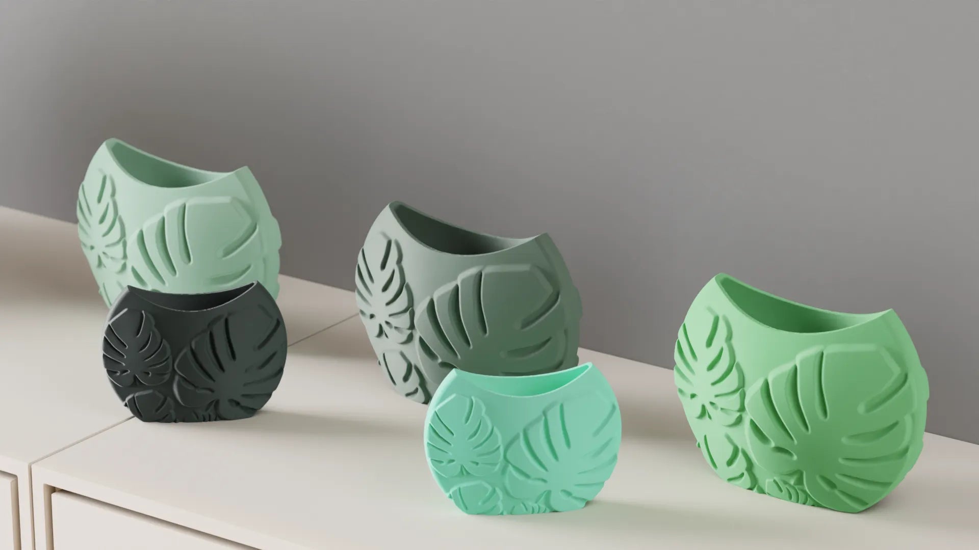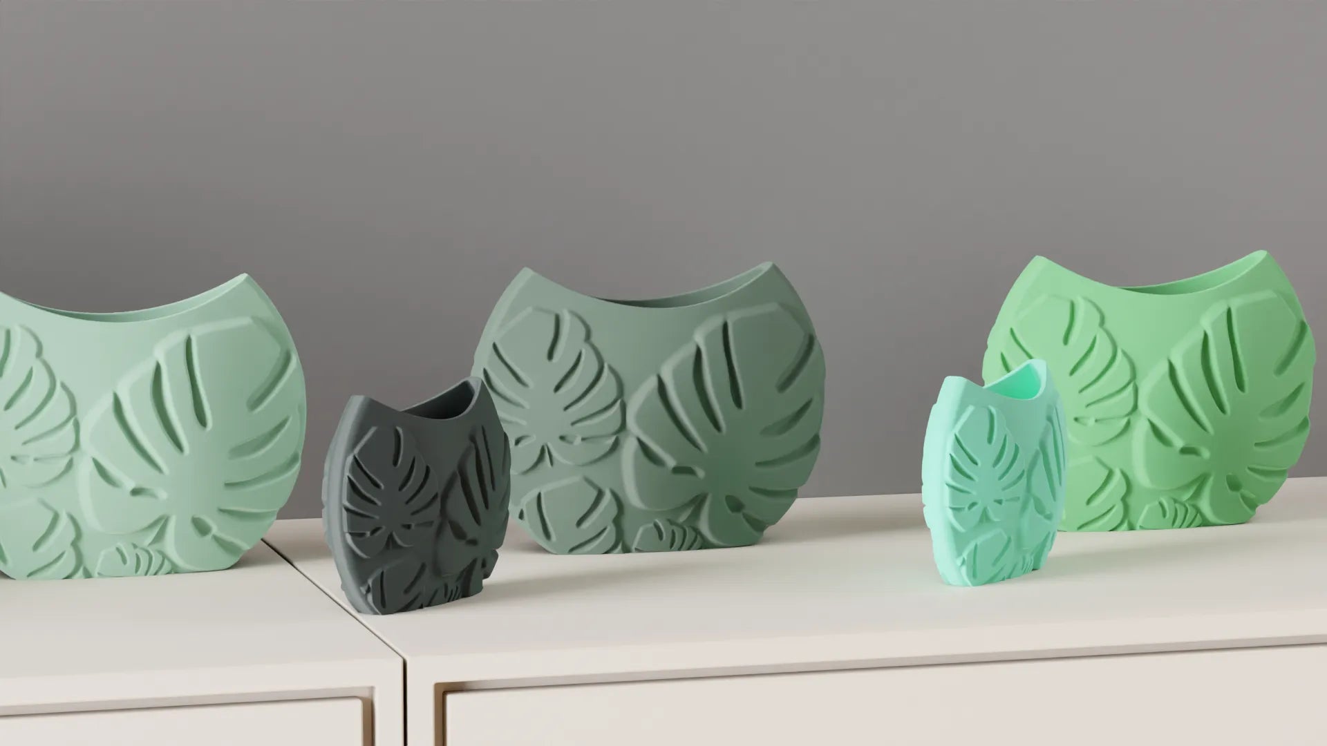 This 3D-printed decorative vase, inspired by tropical nature with a relief of monstera leaves, is ideal for those looking to add a fresh, modern touch to their home decor. Its organic, gently curved design fits perfectly into any space, whether as a stand-alone piece or as an accompaniment to dried floral arrangements.