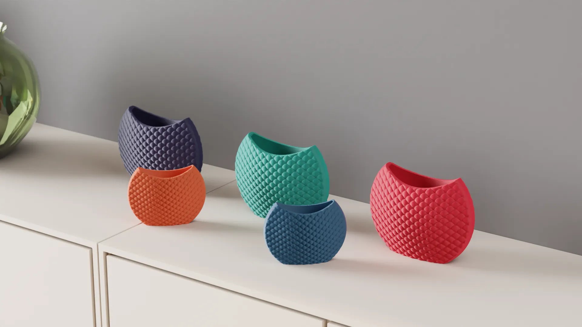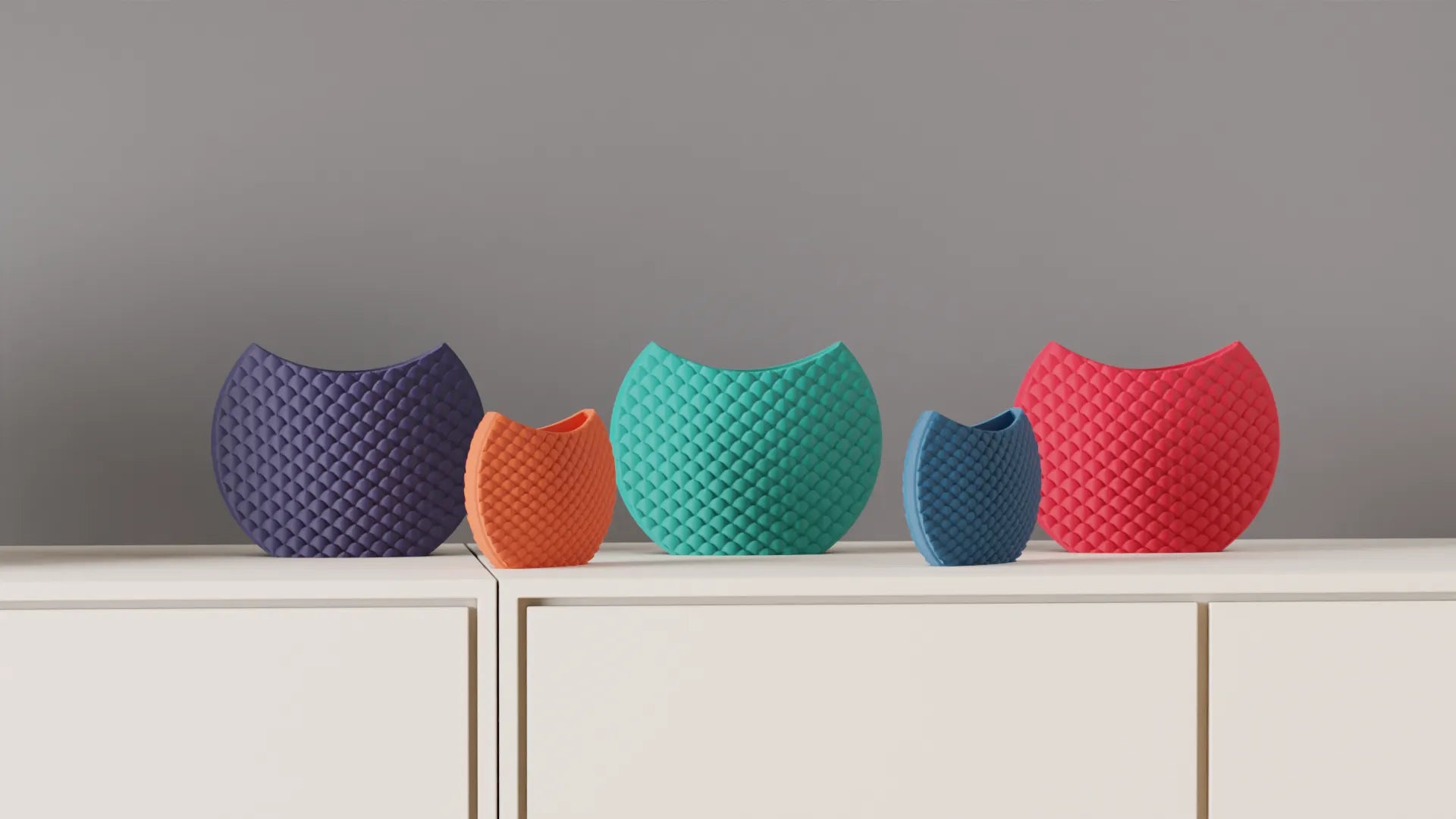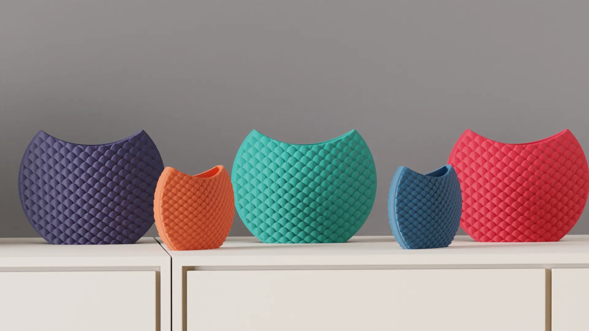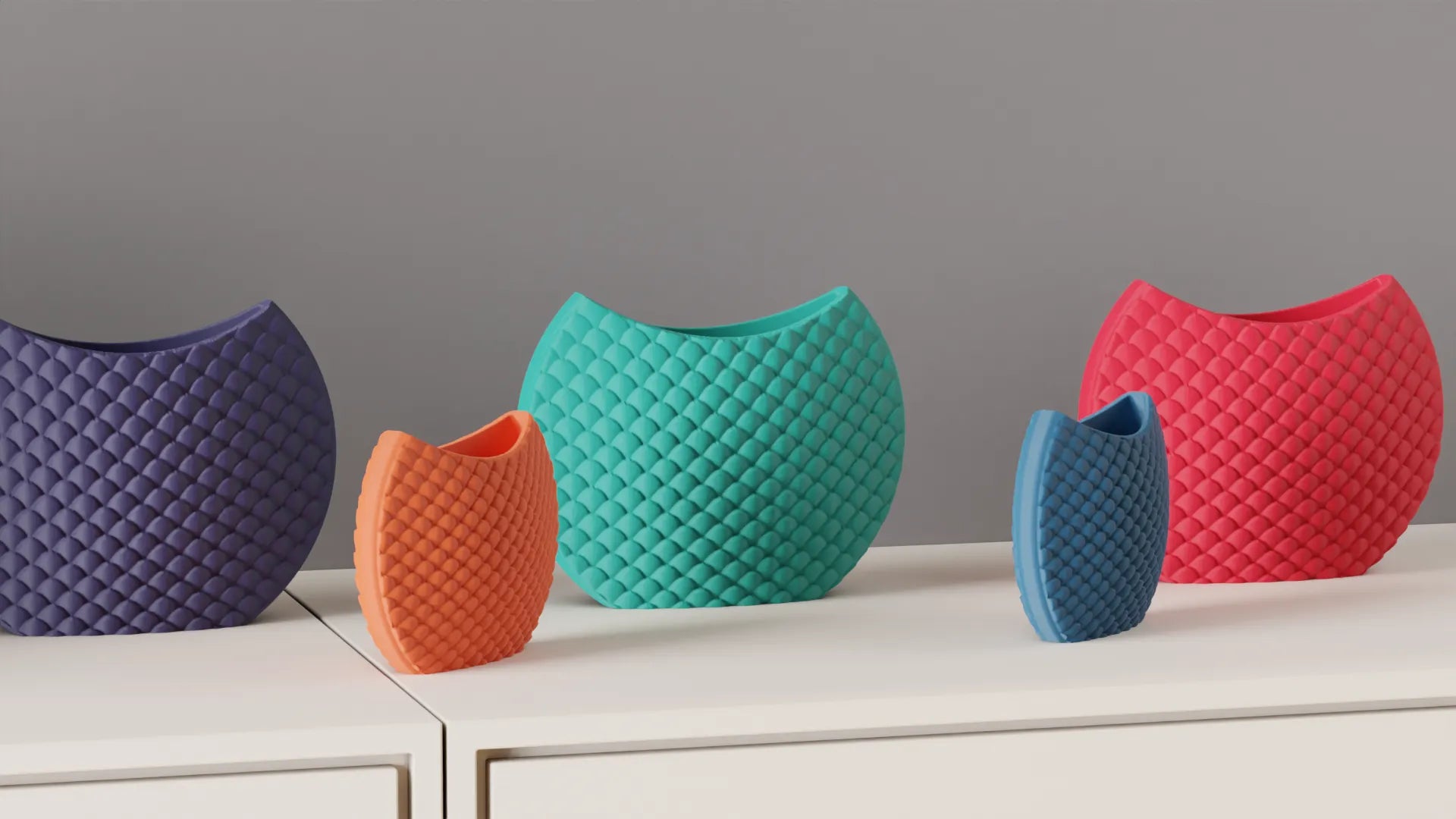 This 3D-printed decorative vase with a relief geometric pattern reminiscent of scales is perfect for those looking to add a modern and comfortable touch to contemporary or minimalist spaces as part of their home decor.