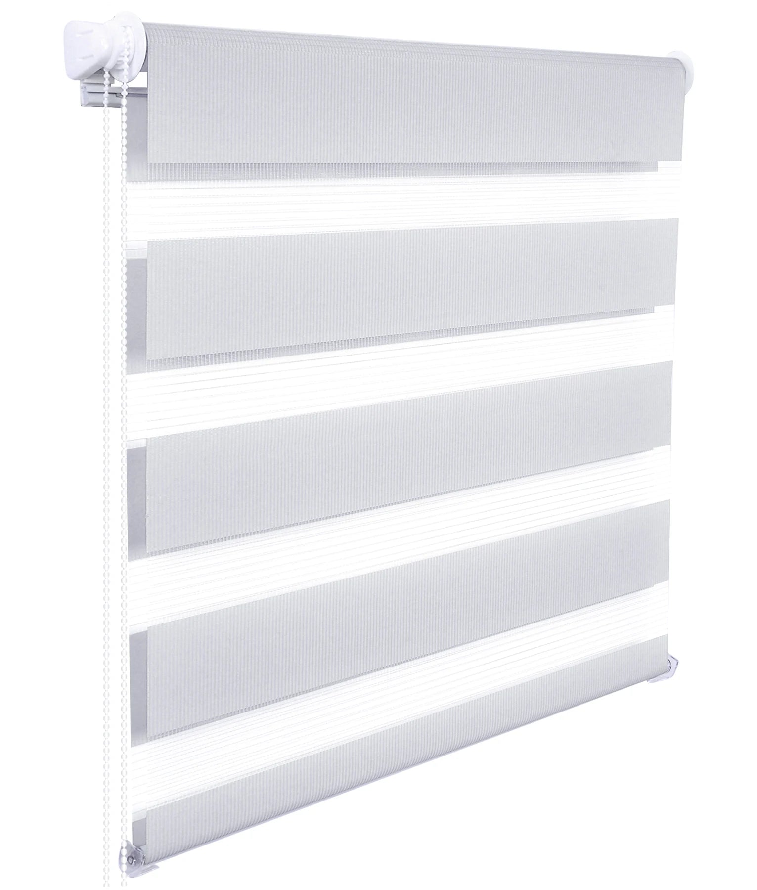Gray day/night roller blind, 80 x 220 cm. Ideal for the living room, bedroom, or office, with light control and privacy thanks to the modern stripe design.