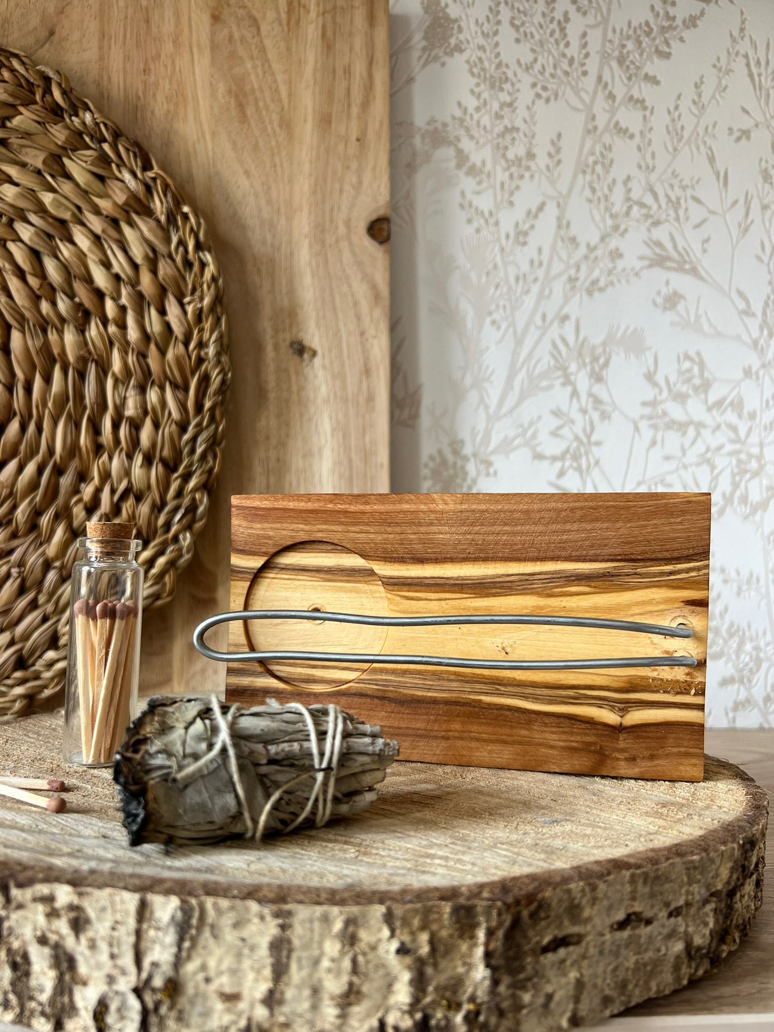 Eth Alen is a handcrafted incense holder made of natural olive wood, designed for those seeking daily rituals with balance, beauty, and functionality. Each piece is unique, flat, and handcrafted, respecting the wood's original shape and grain.