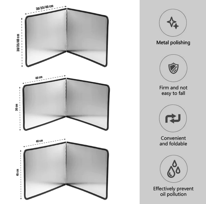 This foldable stainless steel kitchen splash guard is a practical countertop protector. Ideal for everyday cooking, it blocks grease and heat to keep your cooking area clean and safe, and its foldable design makes it easy to store when not in use.