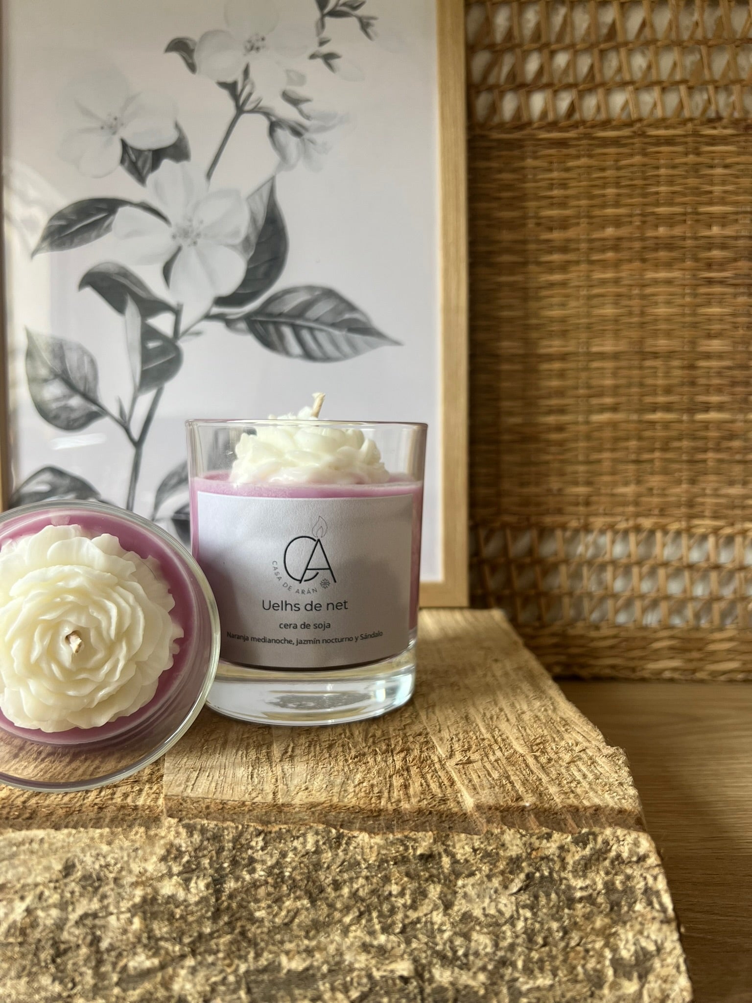 A mysterious and enveloping soy wax candle, Eyes of Night, by Uelhs de Net, inspired by the starry nights of the Aran Valley. Ideal for those seeking a nighttime ambiance that invites calm and relaxation.