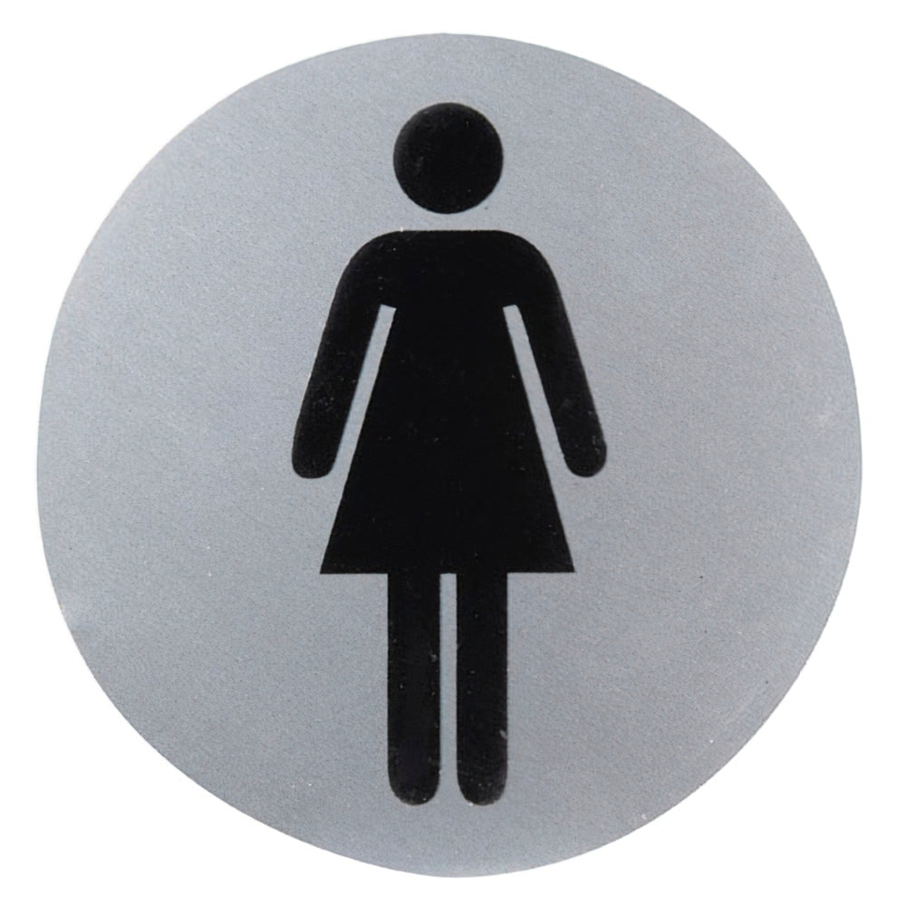 Cartel de señalización en aluminio para baño de mujer, apto para interior y exterior. Diseñado para locales, comunidades y hogares que necesiten indicar la zona de baño femenino de forma clara y duradera.