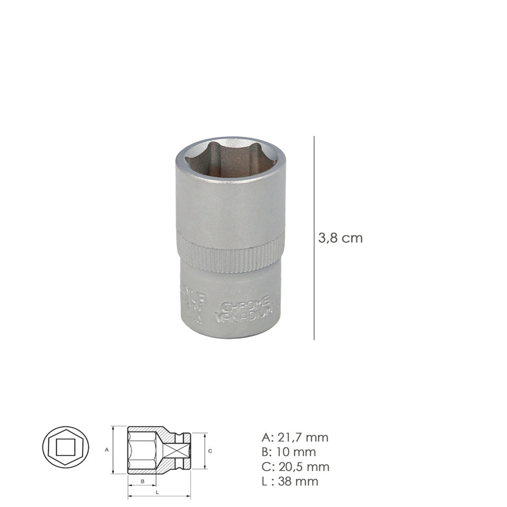 Llave vaso 1/2" hexagonal 15 mm. perfil de 6 caras. acero cromo vanadio, aristas redondas