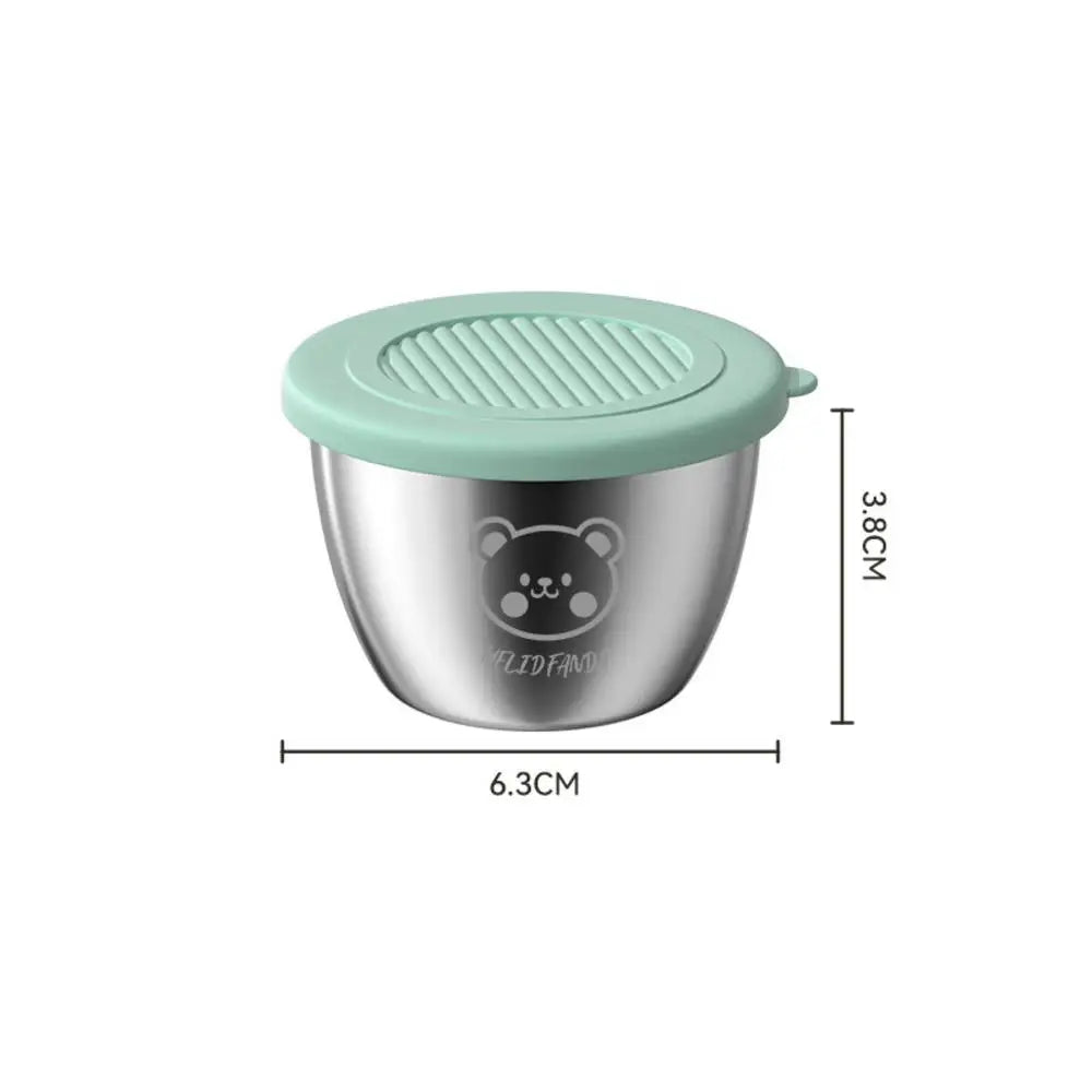 Saucière en acier inoxydable 304 avec couvercle hermétique en silicone et format portable. Idéale pour transporter sauces et condiments au déjeuner, en pique-nique ou pour organiser la cuisine, grâce à sa fermeture sécurisée et son format compact.