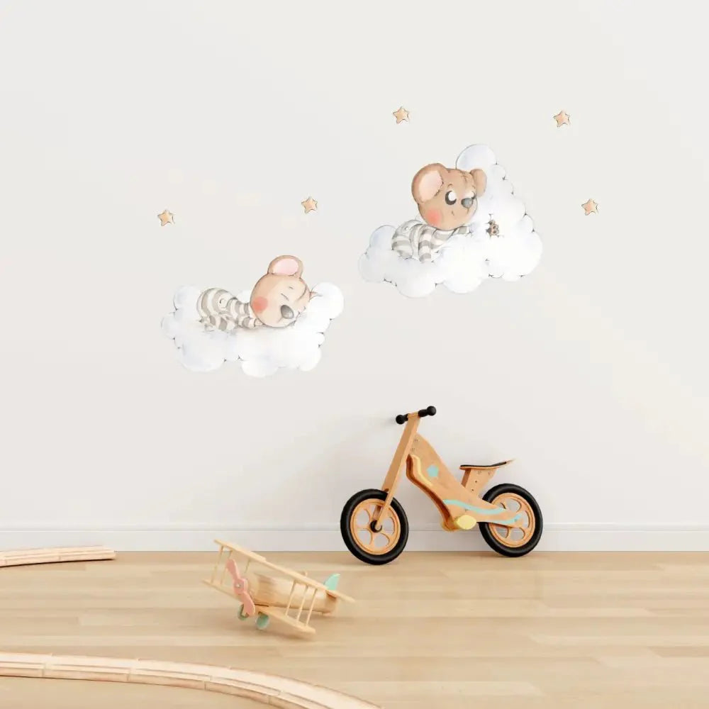 Le vinyle décoratif pour enfants "Entre nubes" de Sueños de Ciguena est un ensemble d'autocollants avec des dessins peints à la main, conçus pour les enfants et les familles qui cherchent à décorer les espaces des enfants de manière créative et personnalisée.
