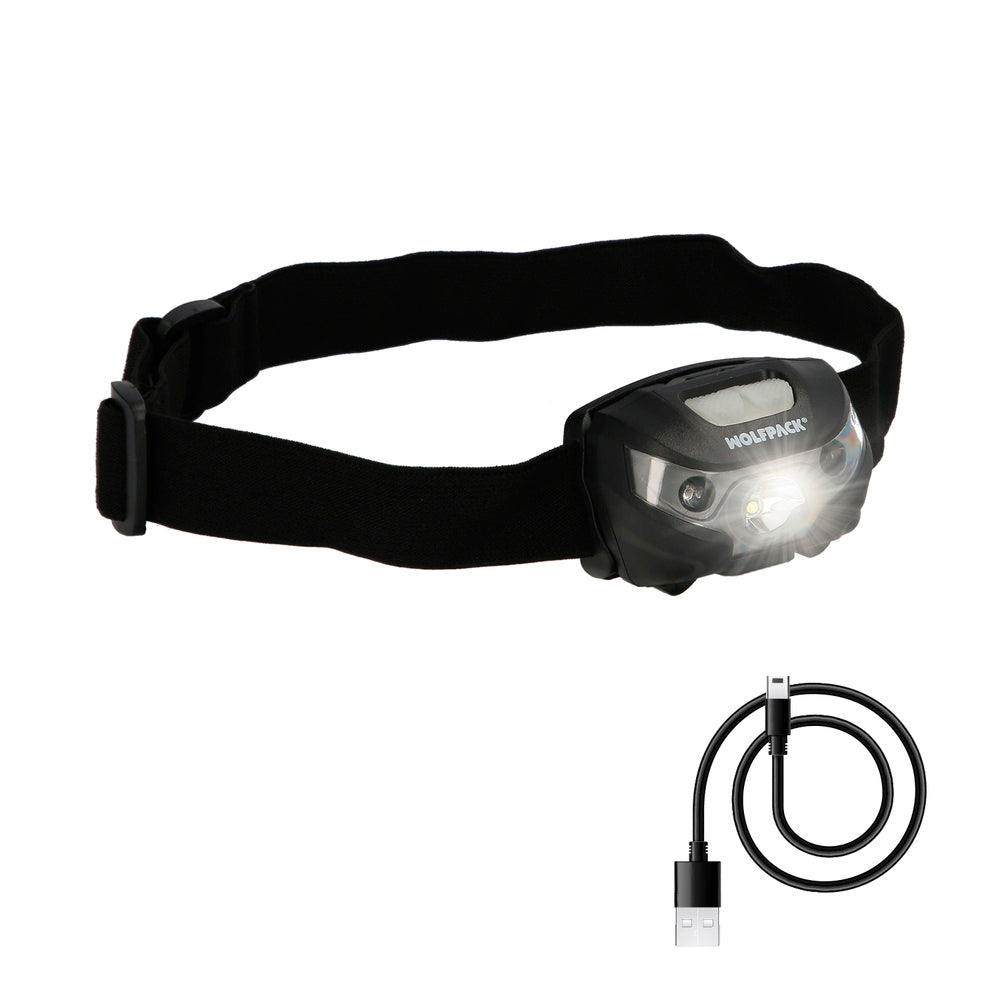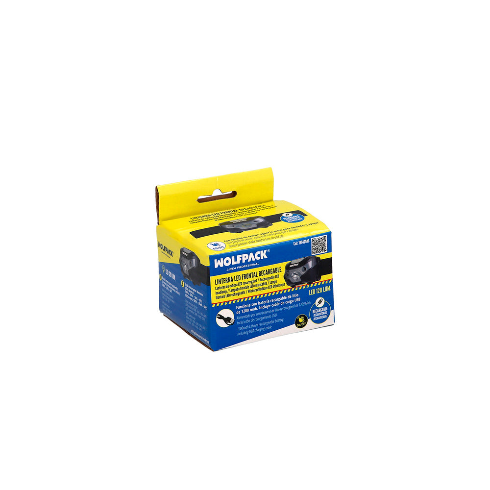 Linterna LED frontal cabeza litio USB recargable. 3 modos de luz. 120 LUM. sensor de encendido y apagado