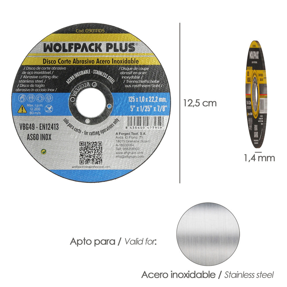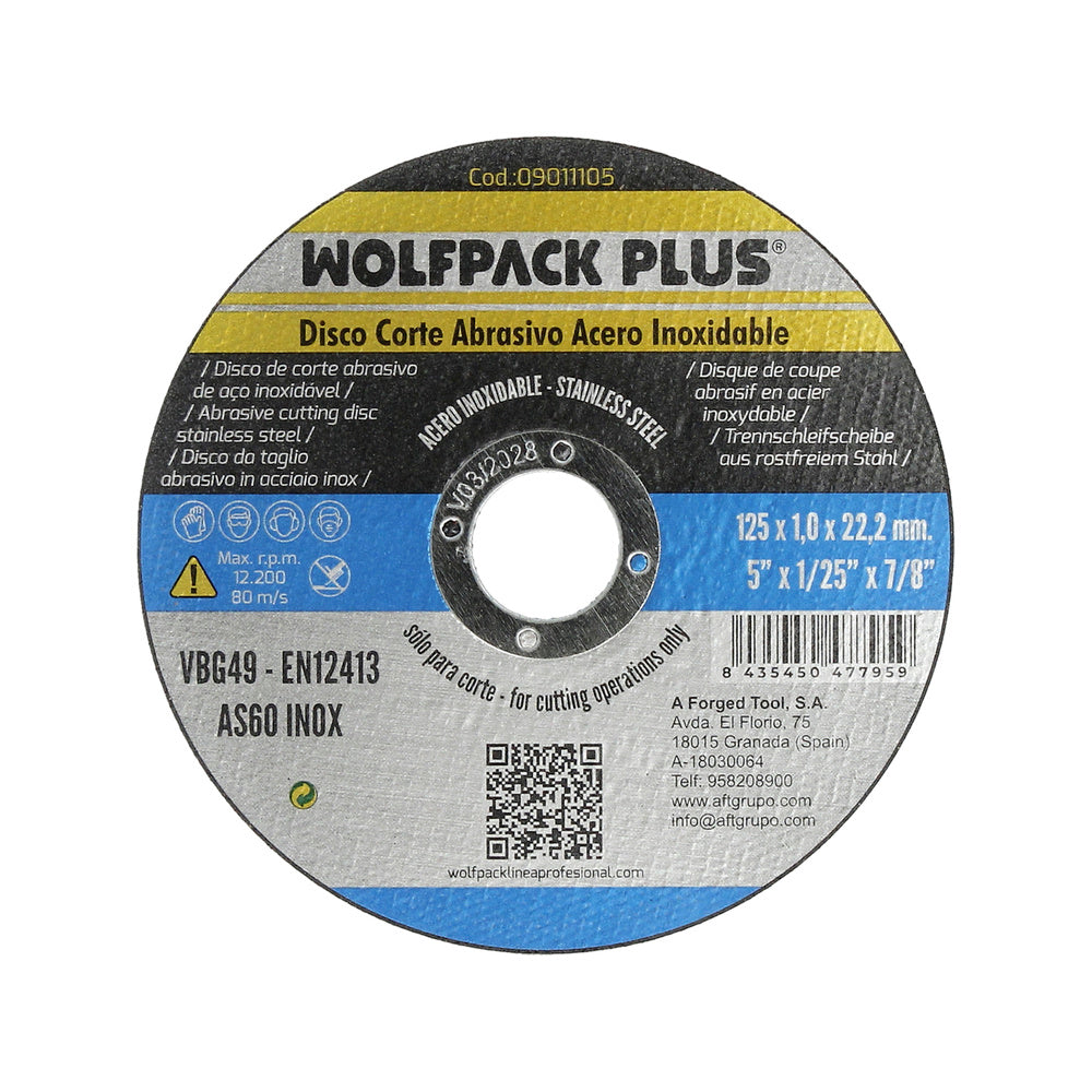 Disco corte abrasivo acero inoxidable ø 125 x 22,2 mm. espesor 1,0 mm