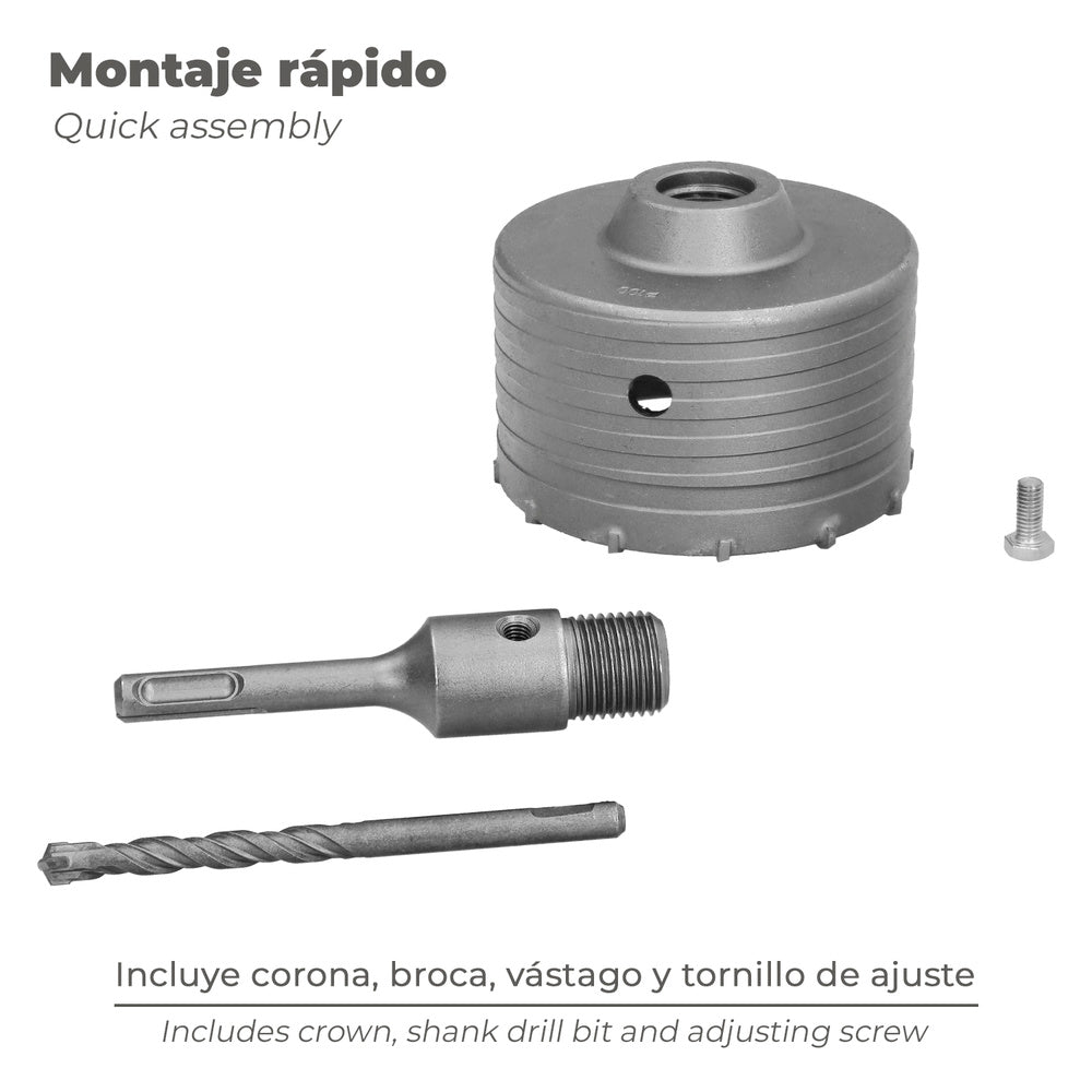 - Componentes: 1 sierra de corona, 1 portabrocas, 1 broca guía.