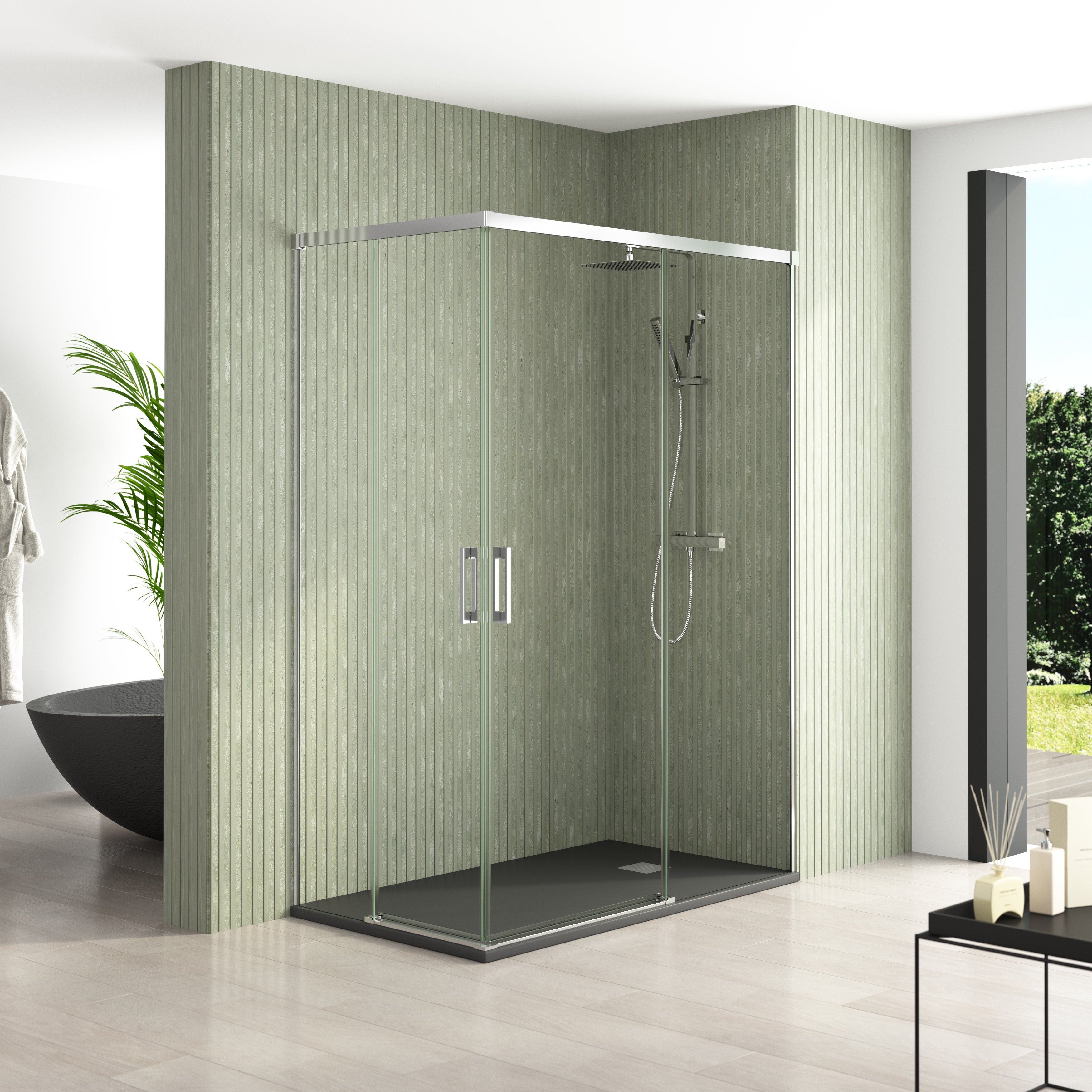 Mampara de ducha rectangular cromo | 2 fijos 2 correderas