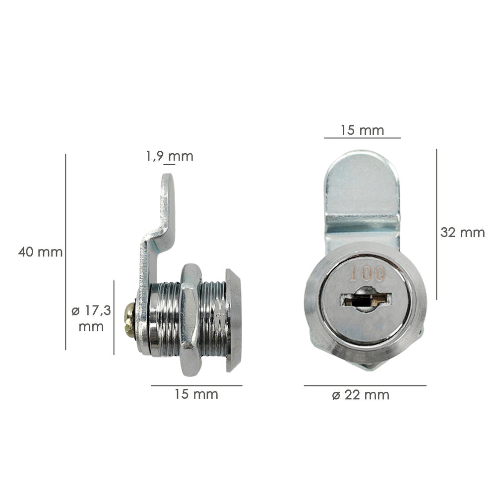 - La cerradura buzón universal de 1 pieza de 16 mm, con 2 llaves.