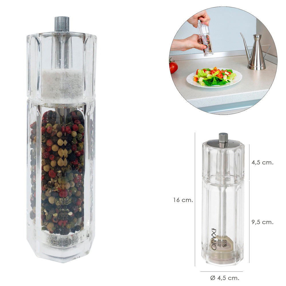 Salero / molinillo pimienta acrílico 2 en 1 salero pimentero ajustable ø 4,5 x 16 cm