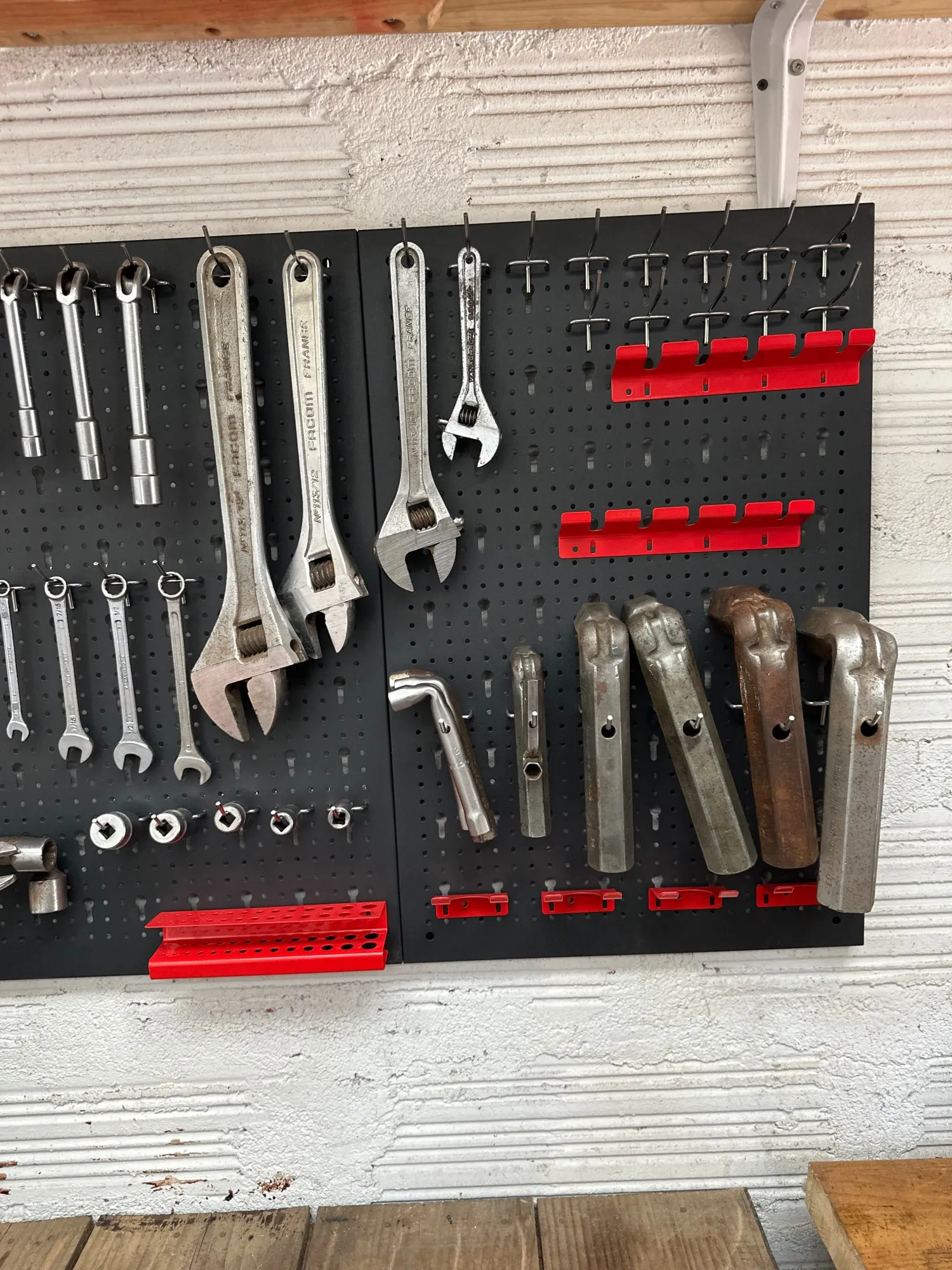 • Ahorra espacio y mejora la organización al mantener herramientas y accesorios visibles y al alcance.