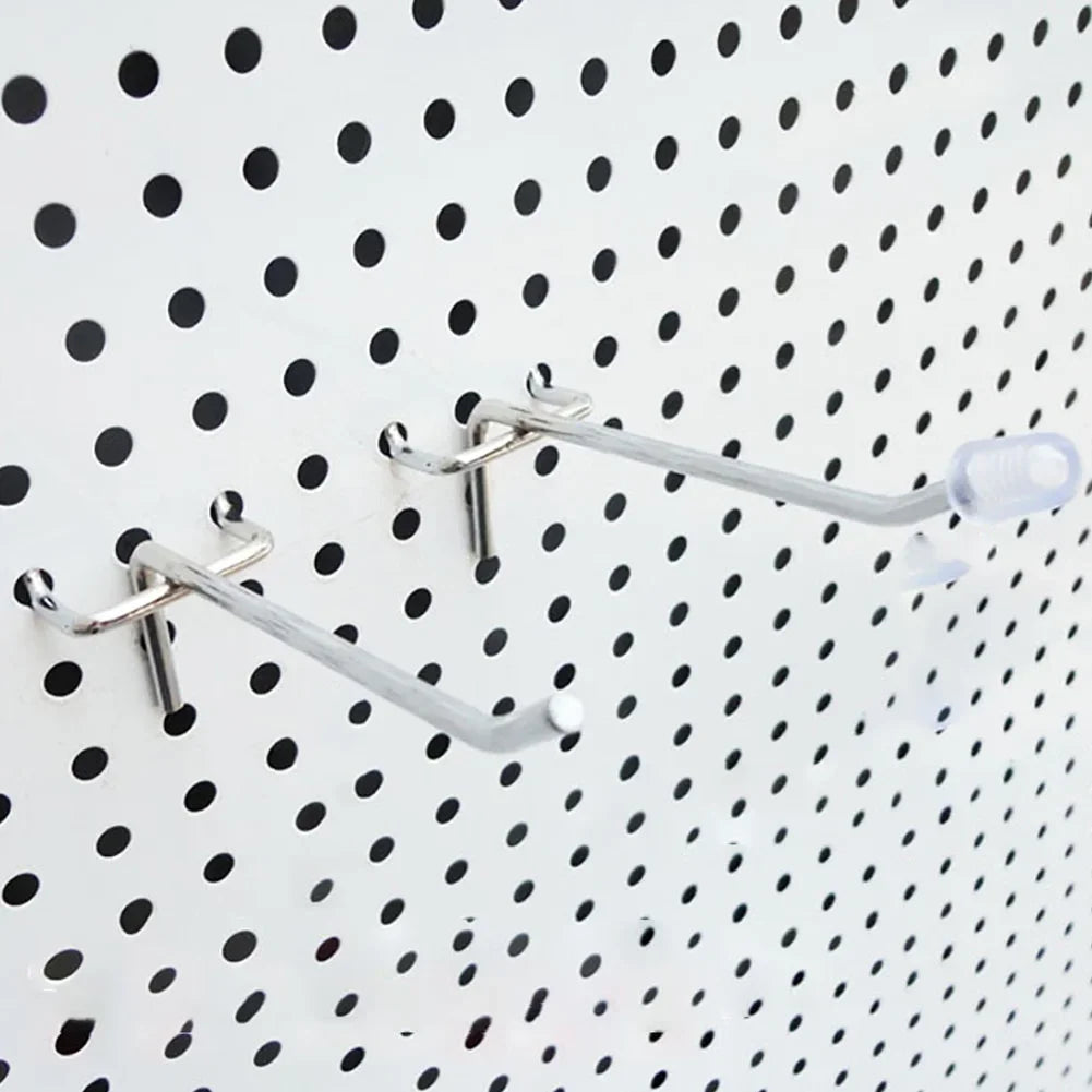 • Contenido: Pack de 20 ganchos para panel perforado (pegboard).