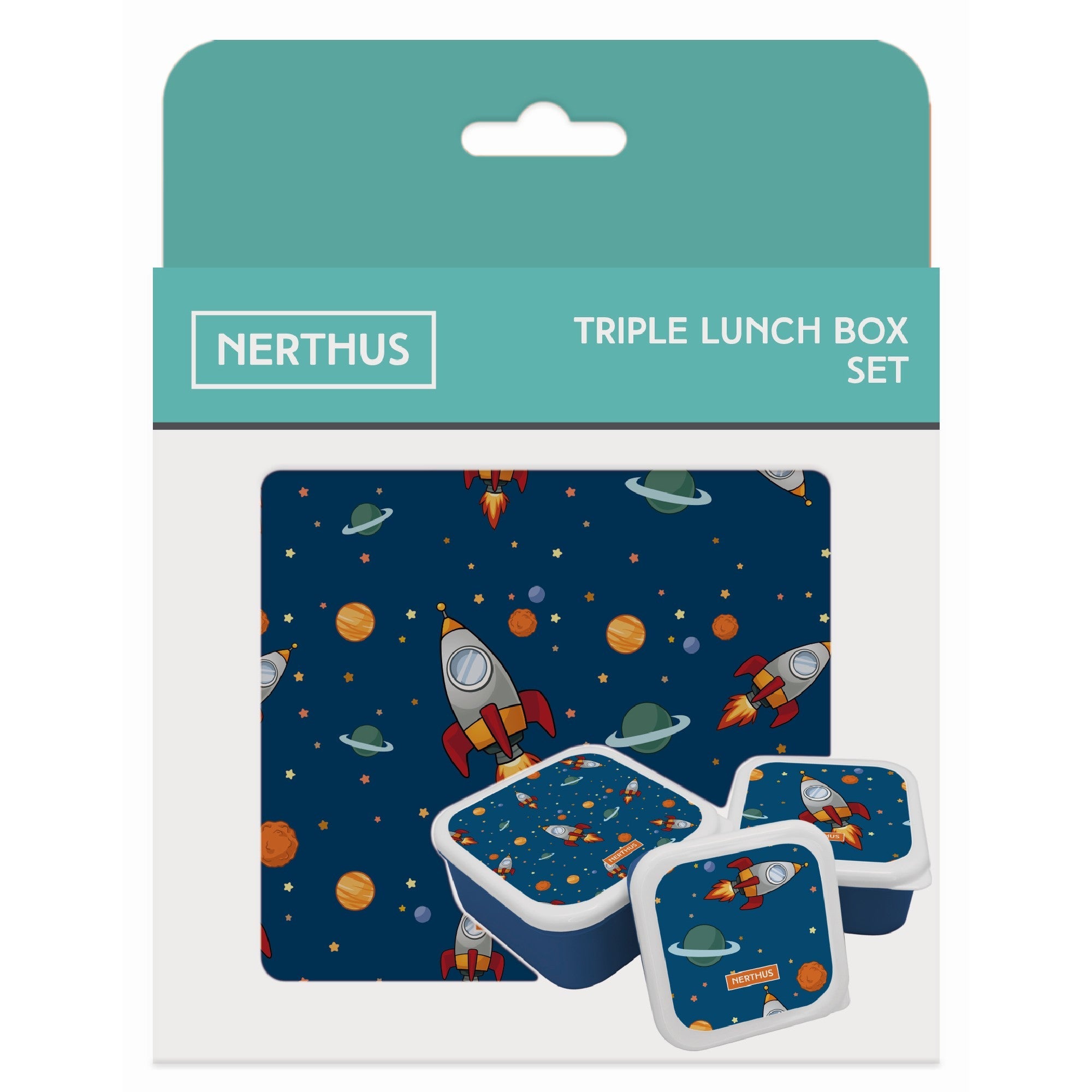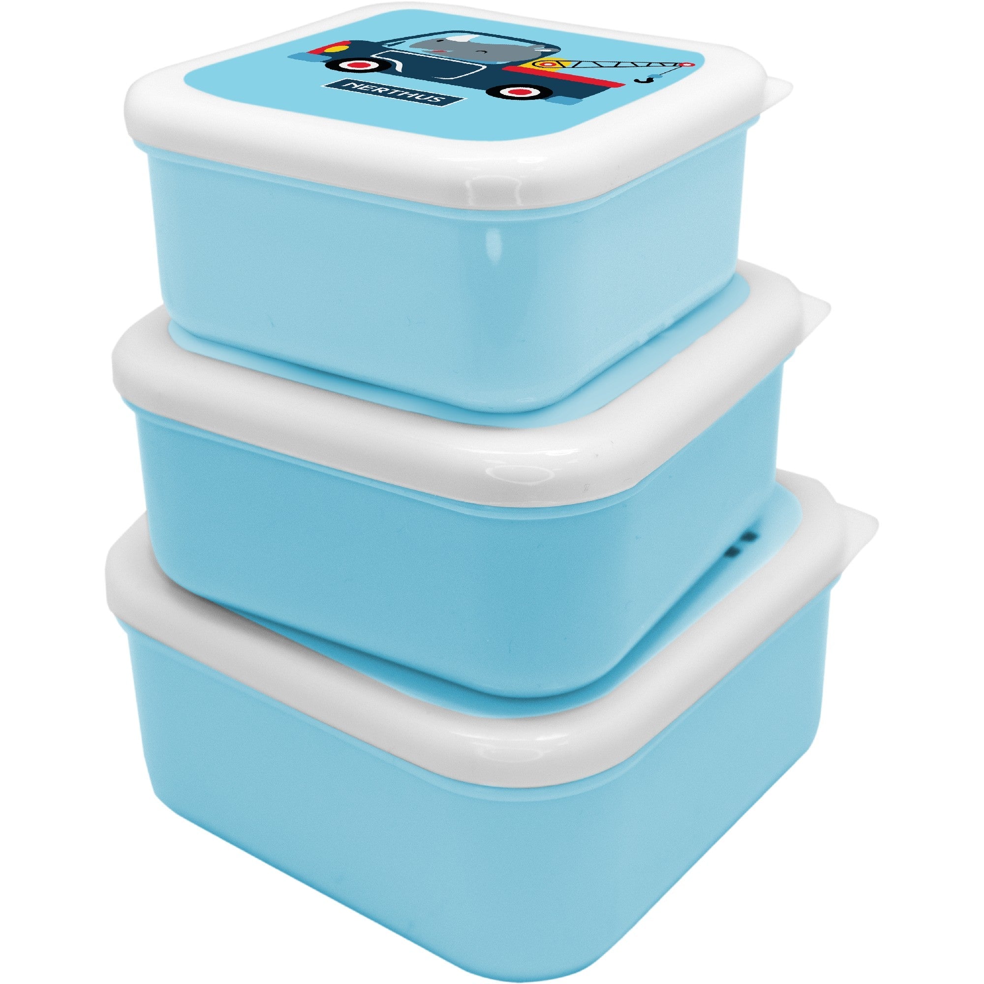 Set de fiambreras infantiles apilables Nerthus, ideal para llevar la comida de los más pequeños de forma organizada, segura y divertida. Incluye tres contenedores con diseños temáticos: coches, fútbol, leones, unicornios, dinosaurios y espacio.
