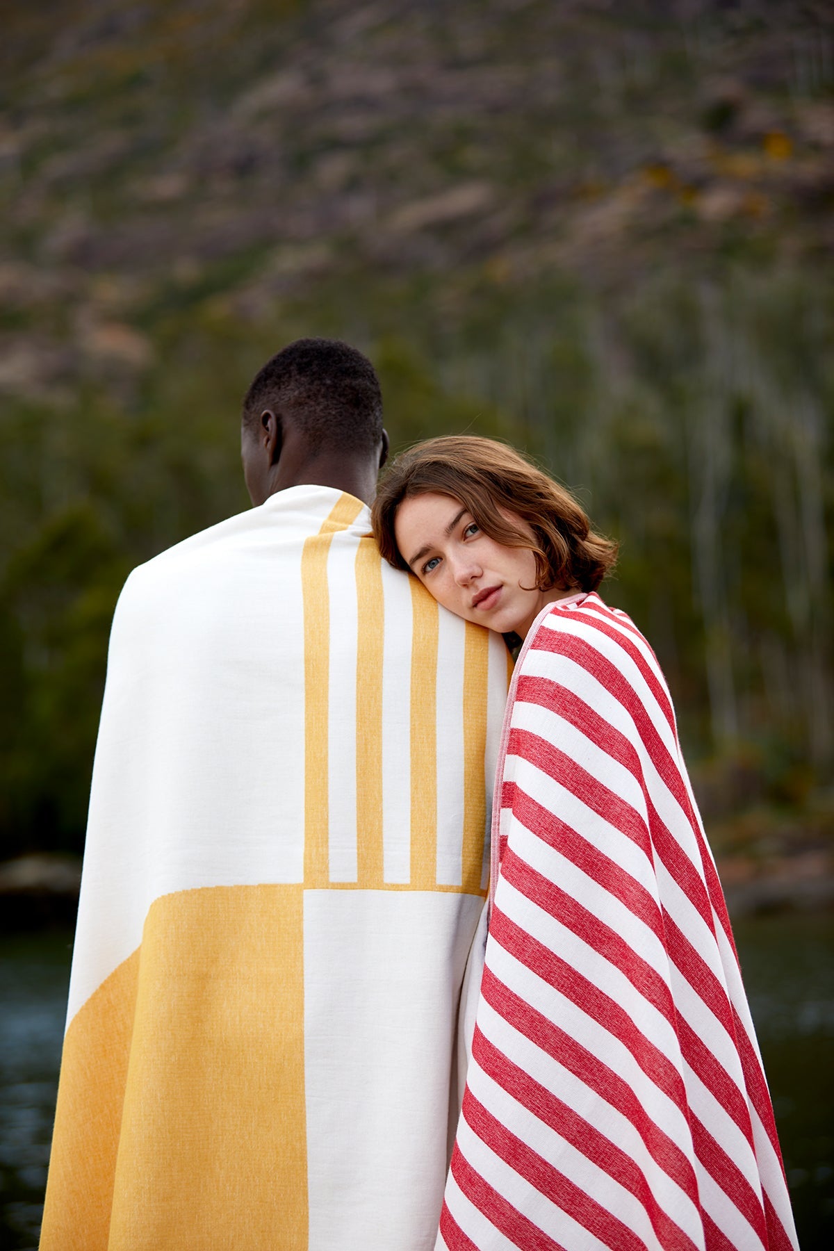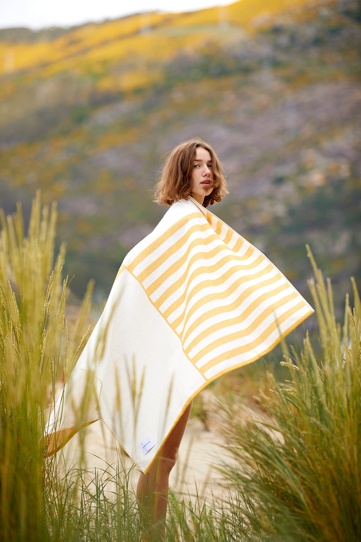 Toalla de playa de algodón orgánico fina y ligera con pinzas