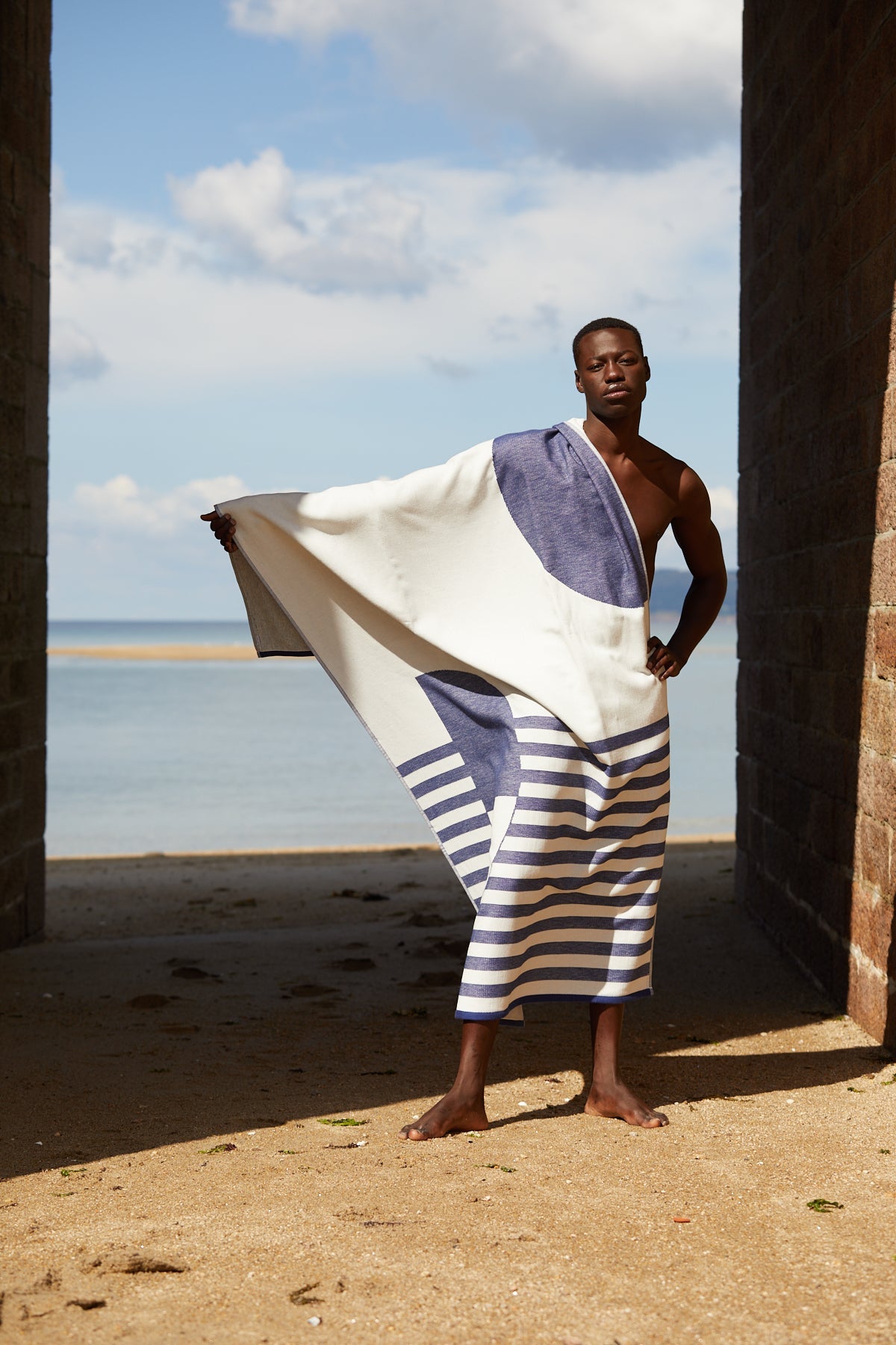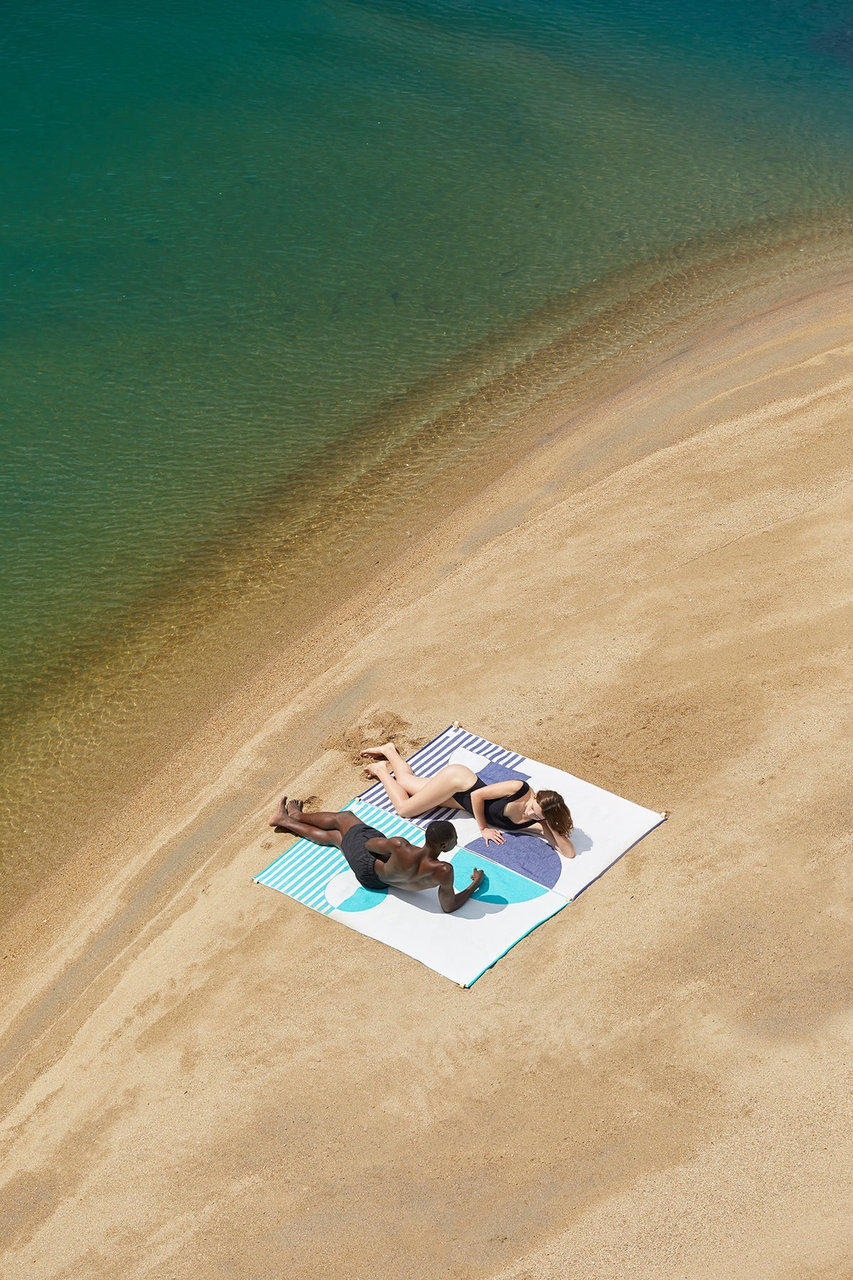 Esta toalla de playa fina de algodón orgánico está diseñada para ofrecer suavidad y comodidad a quienes buscan una experiencia relajada en la playa, con una absorción superior que facilita el secado rápido.