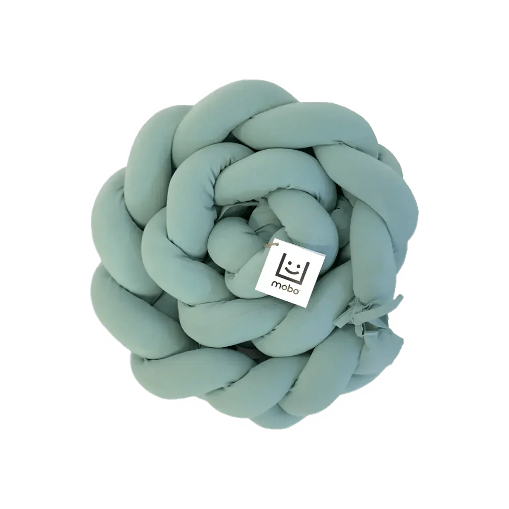 La trenza protector de cuna de 210 cm en color menta es un accesorio de algodón diseñado para bebés, que ayuda a mejorar la seguridad y el descanso en cunas y camas.
