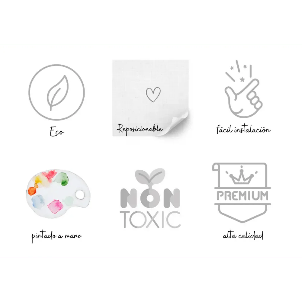 • Material: Tela autoadhesiva libre de PVC y plastificantes, con certificación Greenguard Gold para mayor seguridad.