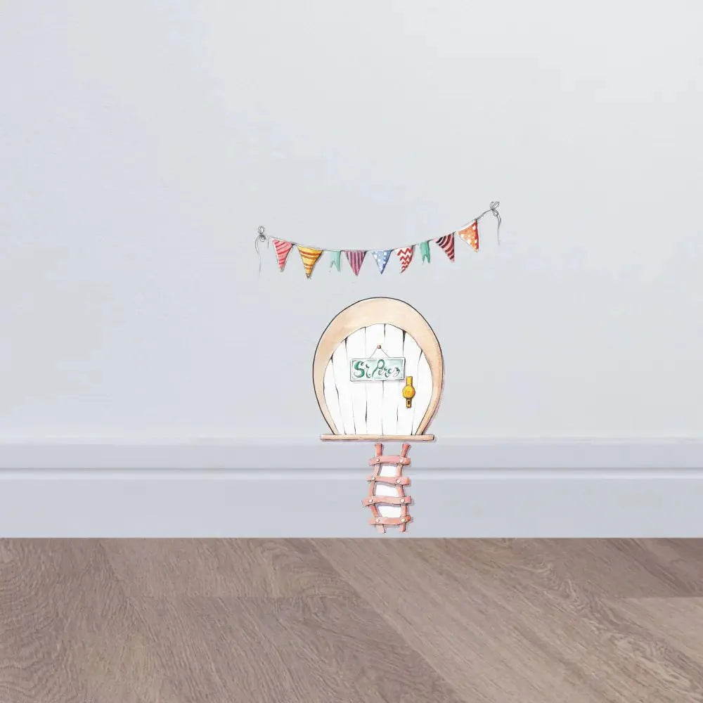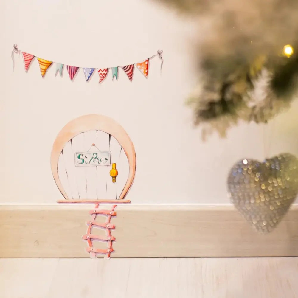 Los vinilos infantiles Ratoncito Pérez son decoraciones adhesivas basadas en dibujos pintados a mano con acuarelas, diseñados para padres que buscan embellecer puertas, paredes o muebles infantiles con un toque exclusivo y de calidad.