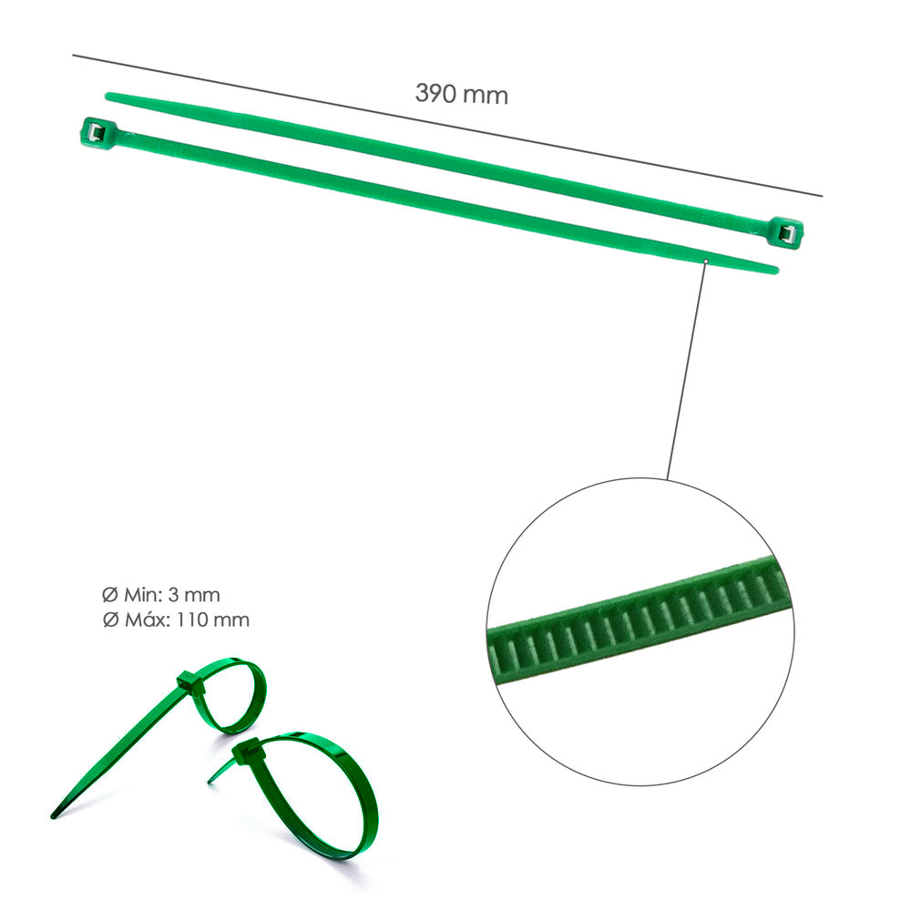 Brida nylon 100%. color verde 4,6 x 390 mm. bolsa 100 unidades. abrabridas nylon 100% verde 4,6x390 mm. (bolsa 100 unidades)
