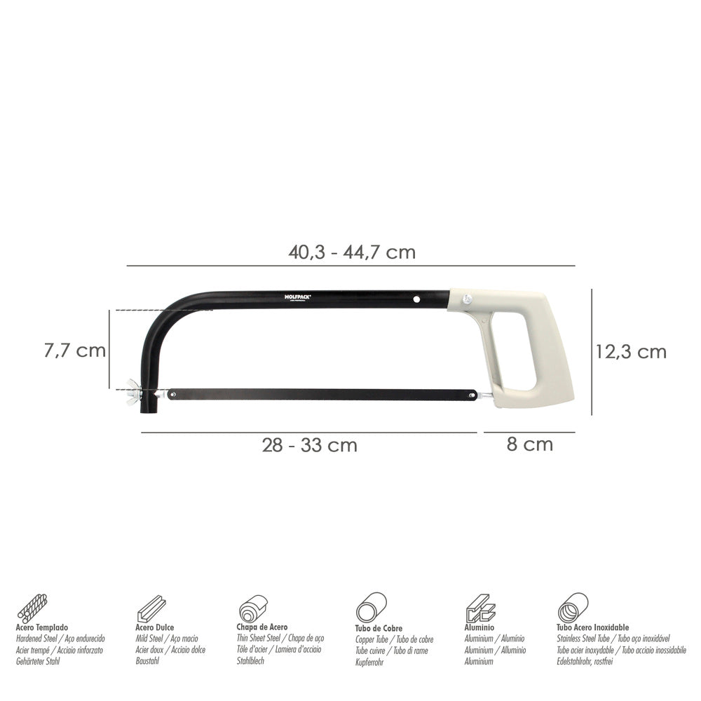 - Artículo también conocido como: limandel, arco de sierra, sierra de arco, sierra metal, sierra metales, etc.