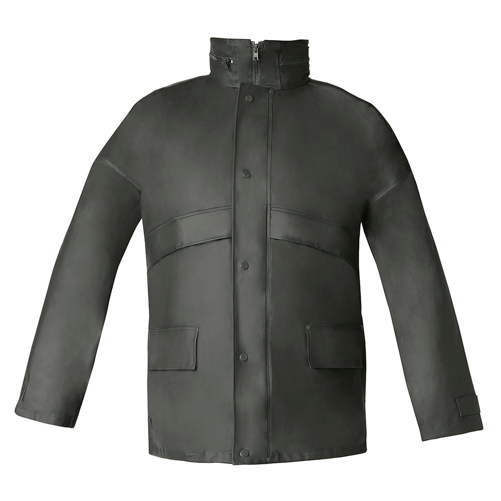 - Capucha dentro del cuello con cierre de cremallera, con cordones de ajuste.