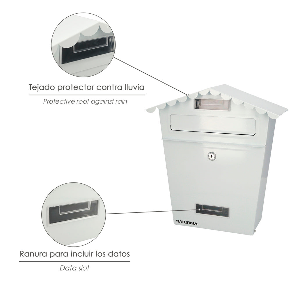 Buzon exteriores house blanco 330 x 125 x 365 (alt.) mm. con tejado, acero pintado. buzon pared, buzon cartas, buzon correos
