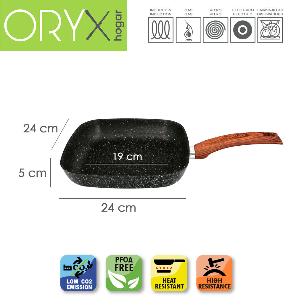 Sartén aluminio forjado antiadherente 24x24x4,5 cm. mango engomado / 5 capas / acabado piedra / todo tipo de cocinas / grill