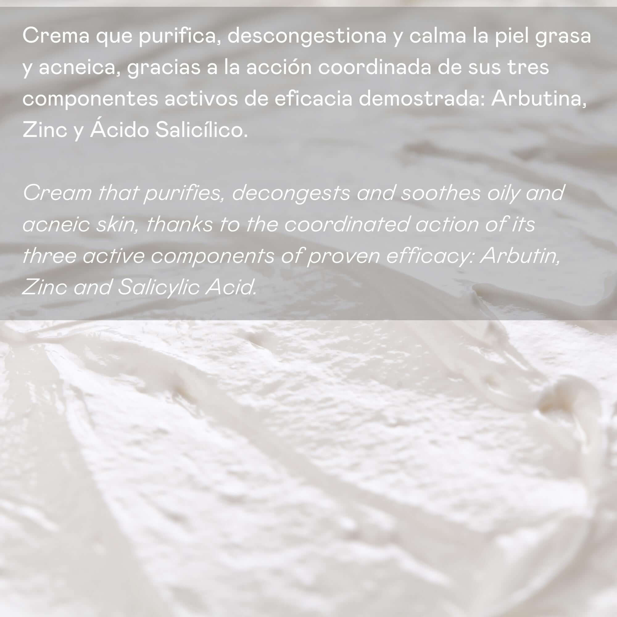 • Crema facial de triple acción para purificar, descongestionar y calmar las imperfecciones cutáneas.