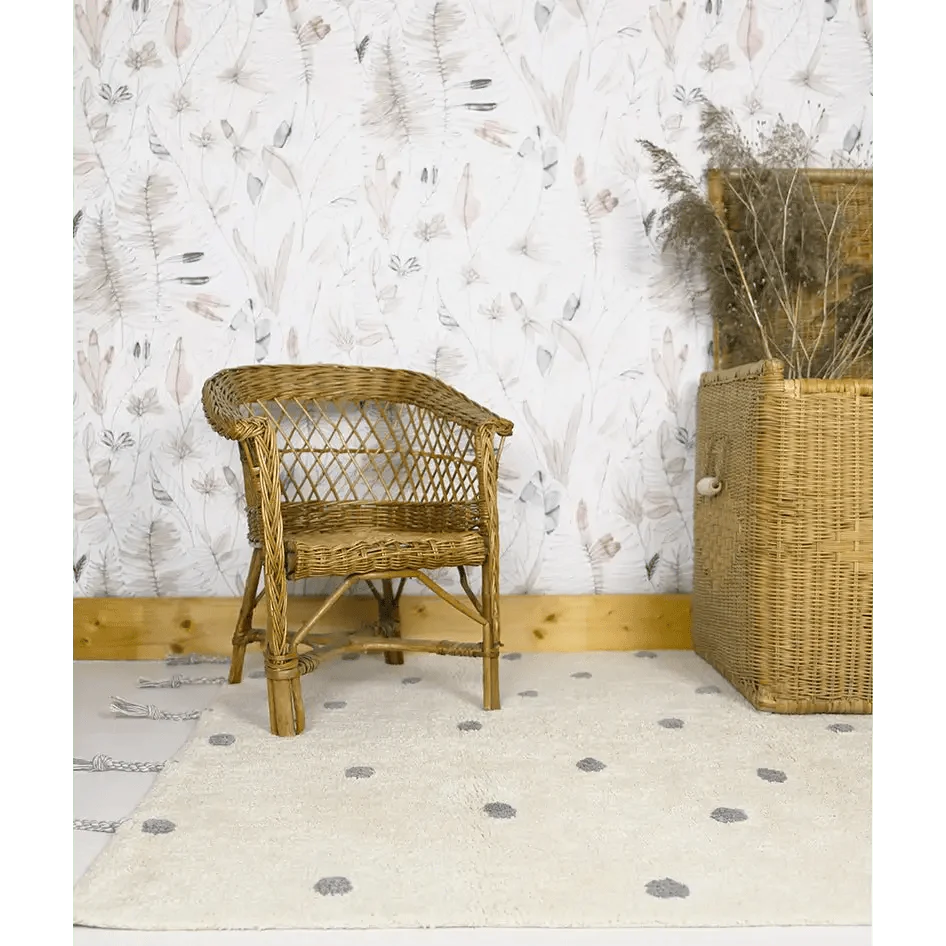 La alfombra infantil NÜMI con lunares grises es una opción perfecta para crear un ambiente suave y confortable para bebés y niños, gracias a su diseño que facilita el juego y el descanso diario.
