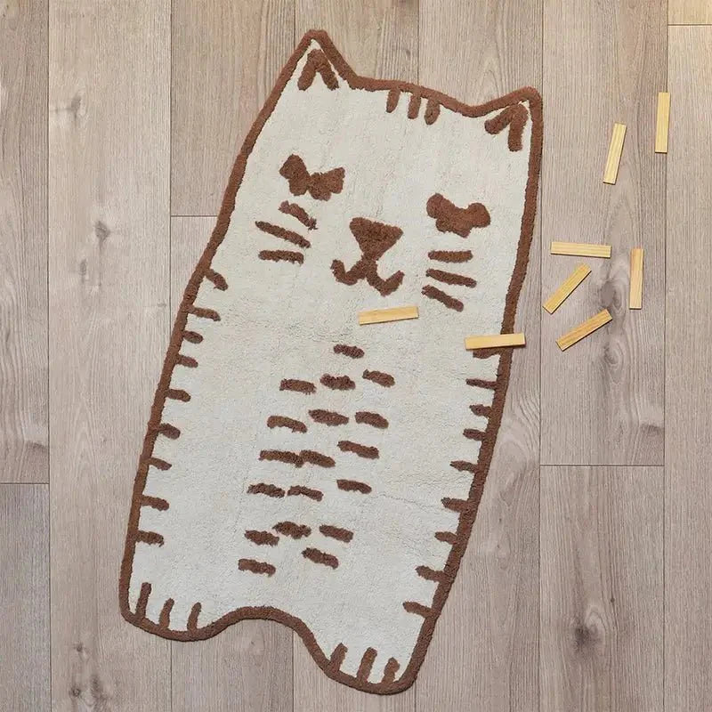 La alfombra infantil de algodón "Pequeño Charlie" es una opción ideal para decorar la habitación de los niños, añadiendo un toque de ternura con su diseño de gatito que les encantará y facilitando la limpieza diaria.