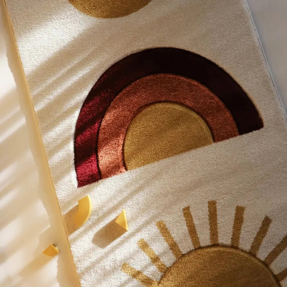 Esta alfombra infantil de terciopelo suave está diseñada para niños, con gráficos poéticos y coloridos que inspiran sueños de buen tiempo. Ideal para decorar el dormitorio y ofrecer un tacto confortable que resalta los detalles del dibujo gracias a técnicas específicas.