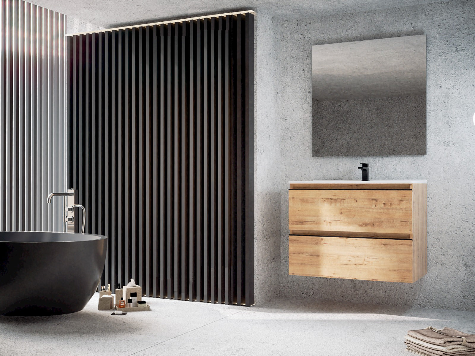 Mueble de baño conjunto 2 cajones Roble Ostippo suspendido
