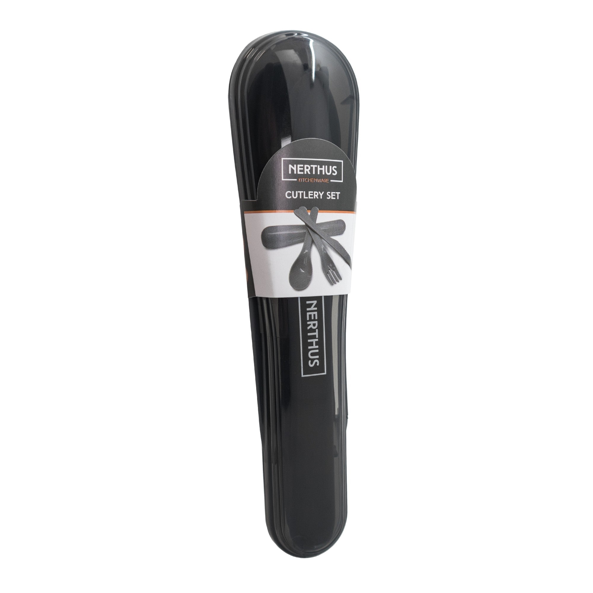 Su funda de transporte rígida en color gris permite guardar los cubiertos de forma higiénica, manteniéndolos protegidos y listos para usar en cualquier momento.