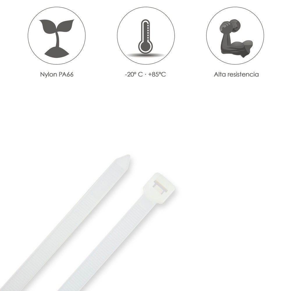 Brida nylon 100%. color blanco / natural 3,5 x 140 mm. 100 piezas. abrazadera plástico, organizador cables, alta resistencia