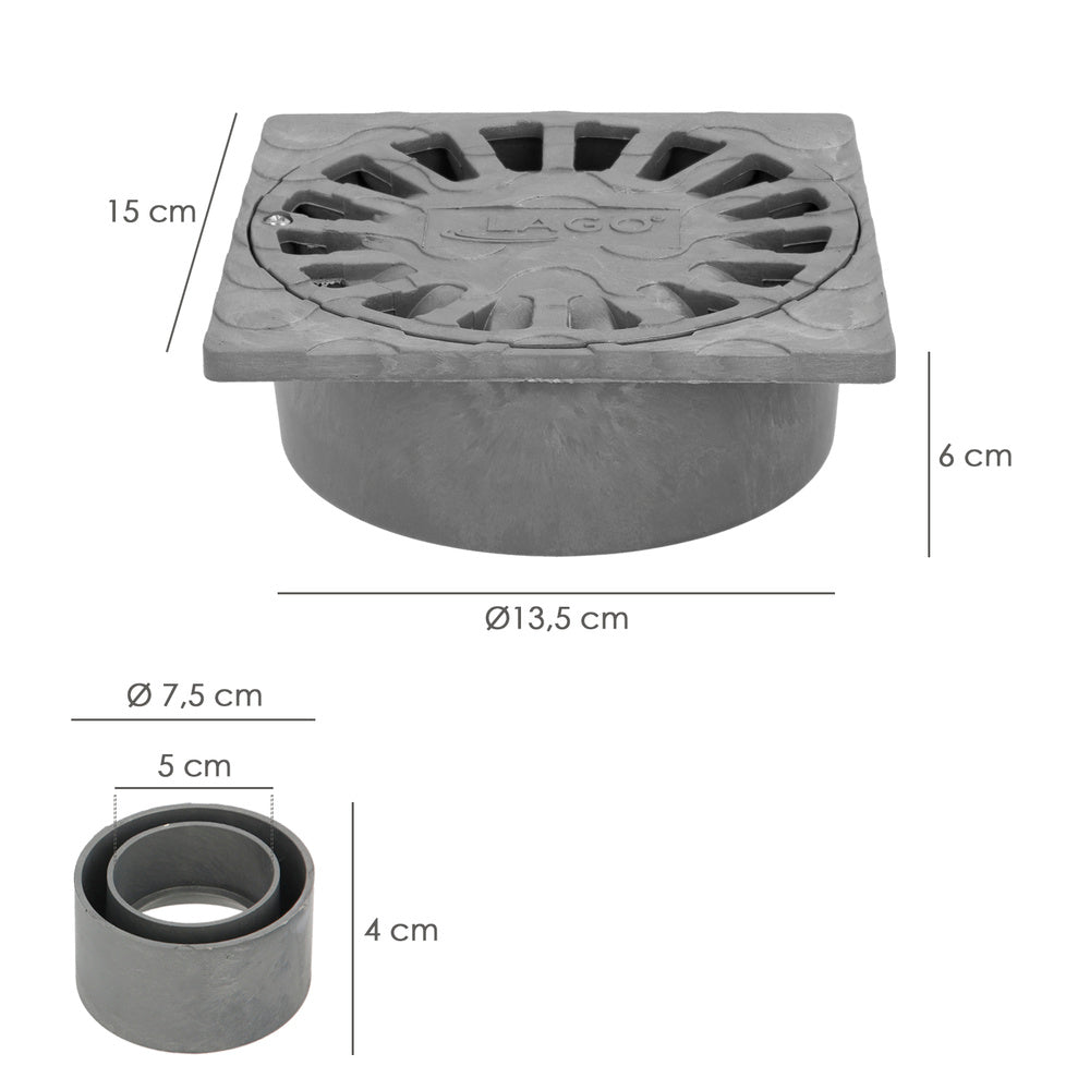 Sumidero sifónico pvc 15x15 cm. salida de ø 75 / 50 mm. desagüe, desaguadero, tragadero, alcantarilla,