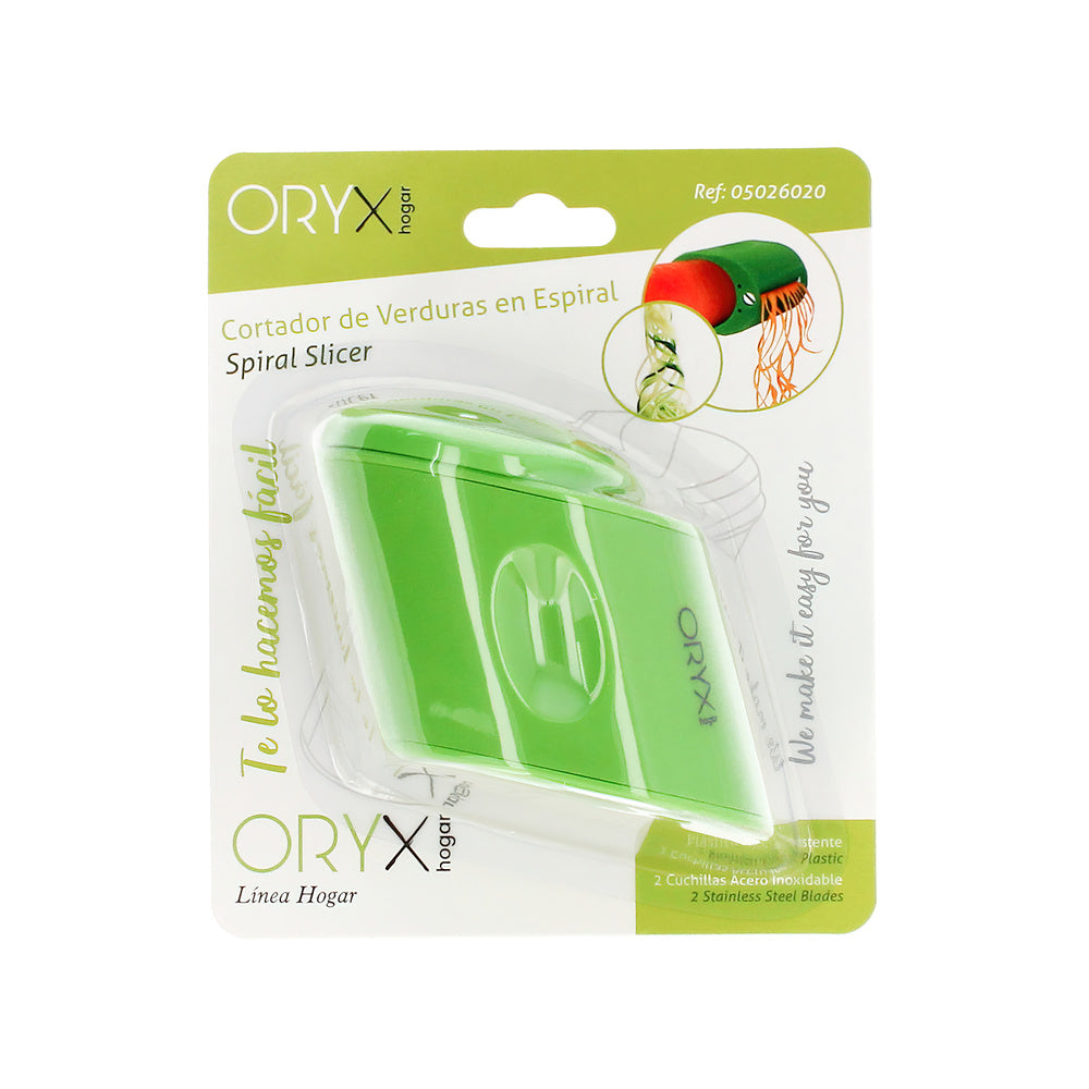- Cortador de verduras con doble cuchilla, para corte fino o grueso, en forma de espiral.