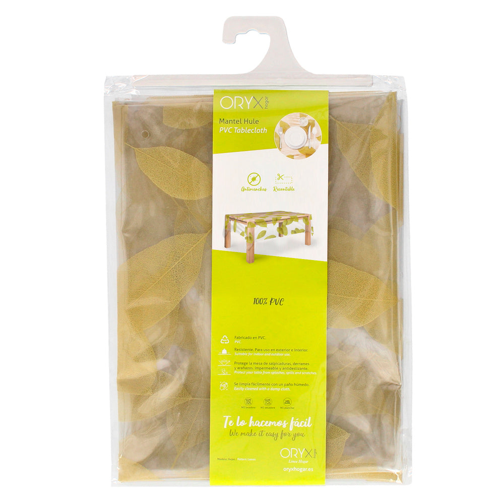 Mantel Hule Rectangular 140 x 250 cm. Hojas Transparente