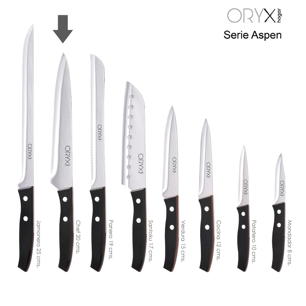 - La serie Aspen destaca por el equilibrio de sus cuchillos teniendo el centro de gravedad idoneo, usando estos cuchillos te sentiras comodo para realizar los mejores cortes.