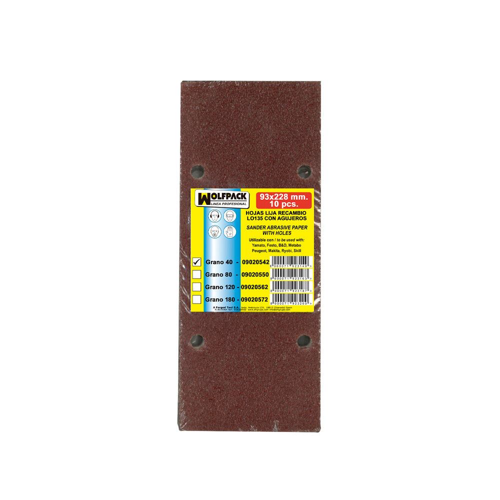 Lija recambio con velcro 93x228 mm. con agujeros grano 40 (10 piezas)