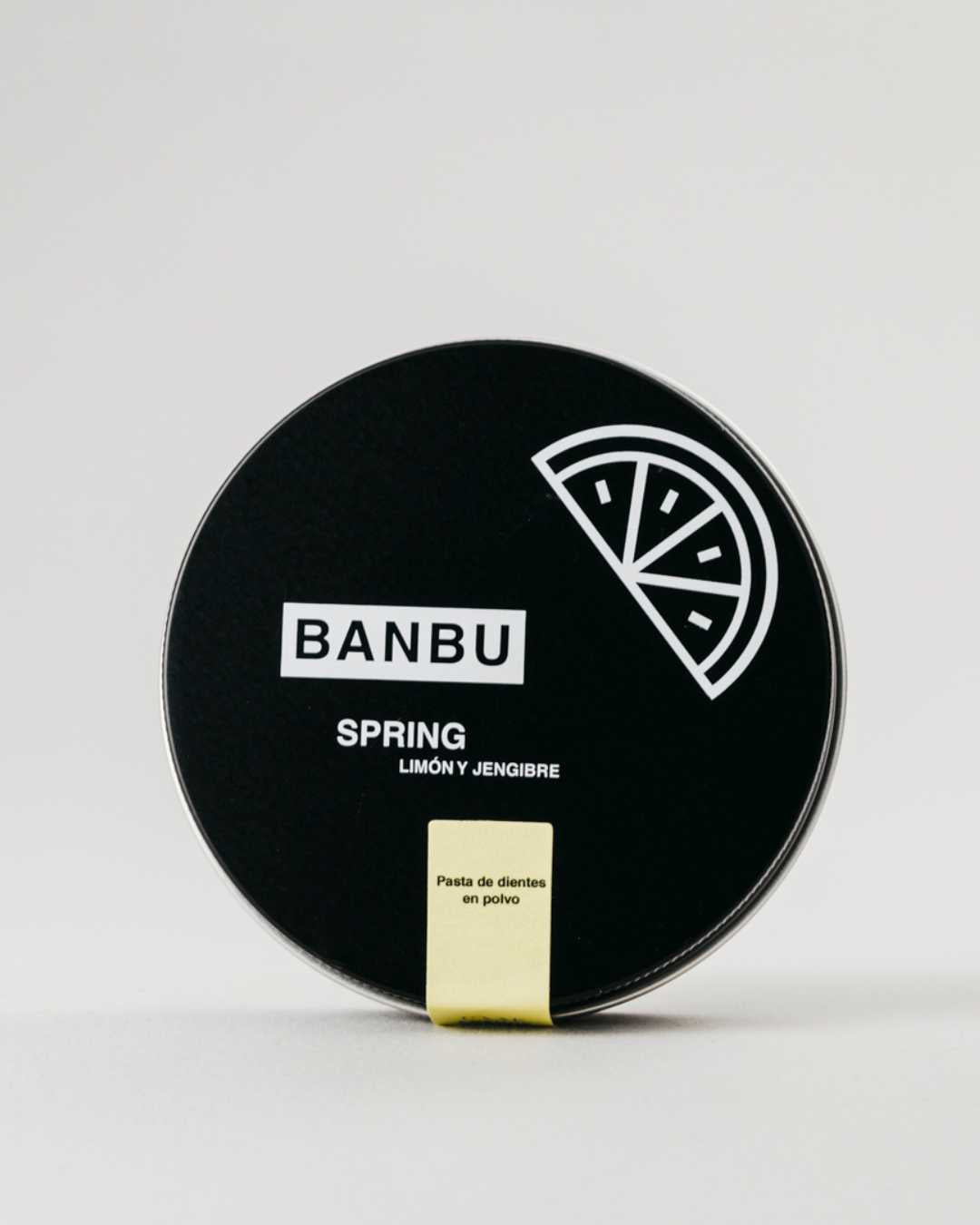 Pasta de dientes en polvo natural con limón y jengibre. Ideal para quienes buscan una opción natural sin flúor y apta para toda la familia, con beneficio principal de proteger las encías, combatir la placa y prevenir la caries.