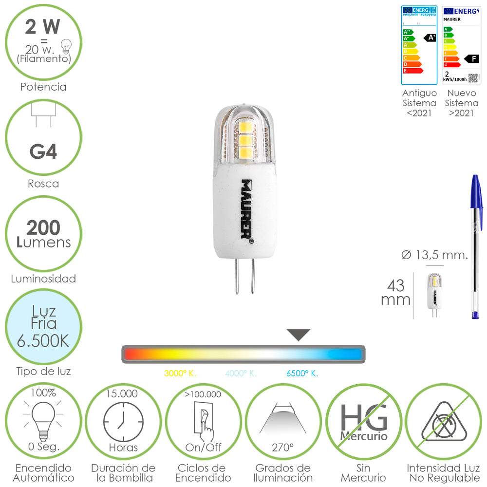 Bombilla Led Dicroica Rosca G4. 2 Watt. Equivale A 20 Watt. 200 Lumenes. Luz Fria (6500º K)