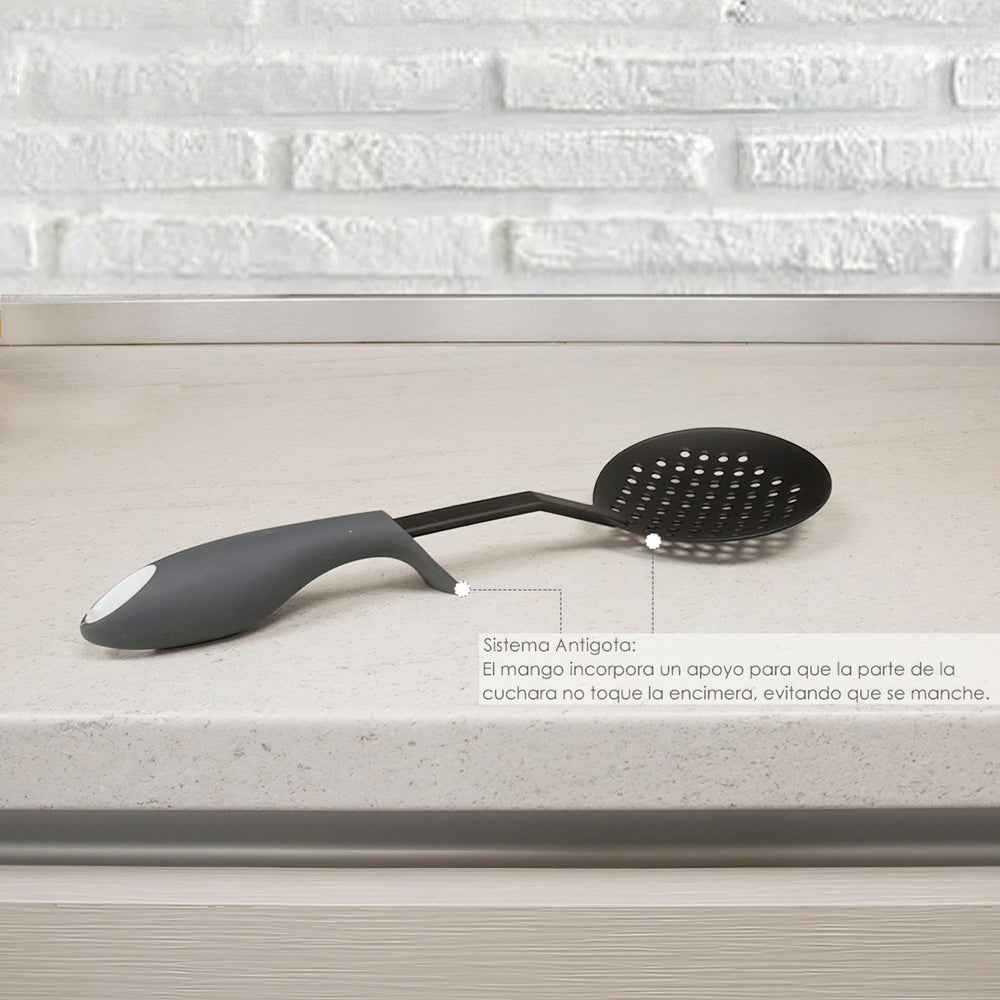 Espumadera cocina nylon con mango antigotas engomado 35 x 11,7 cm